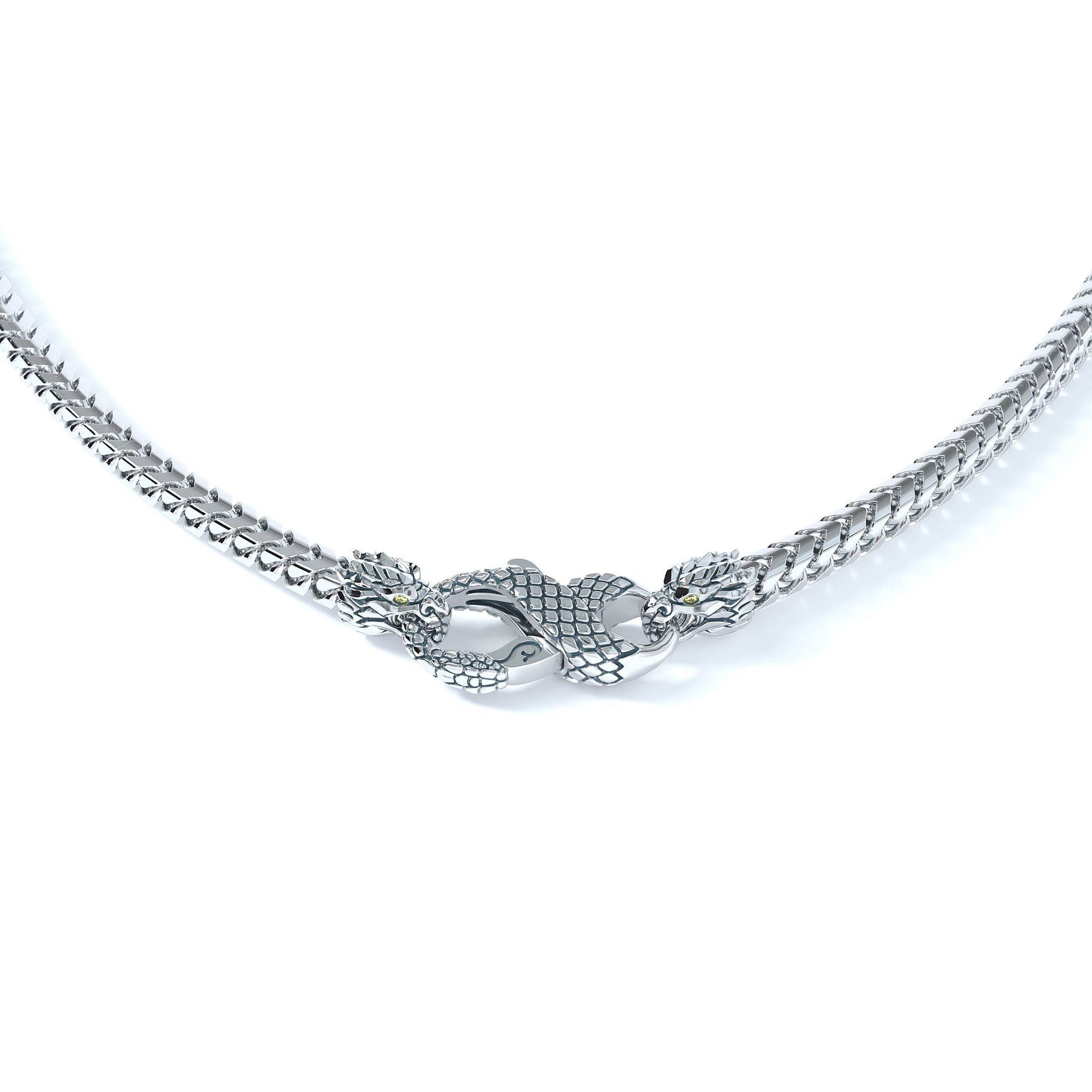 Each piece replaces the standard lobster clasp with our proprietary Snake Clasp, where a serpent locks through the open mouth of the predator. Long a symbol of wisdom, renewal, and eternal life, the serpent passing through the mouth—an ancient threshold of instinct, fear, and mortality—represents entering darkness, confronting the obstacle, and emerging unbroken and transformed. In the Stoic sense: fear loses its power when faced directly, and the obstacle is the way.
