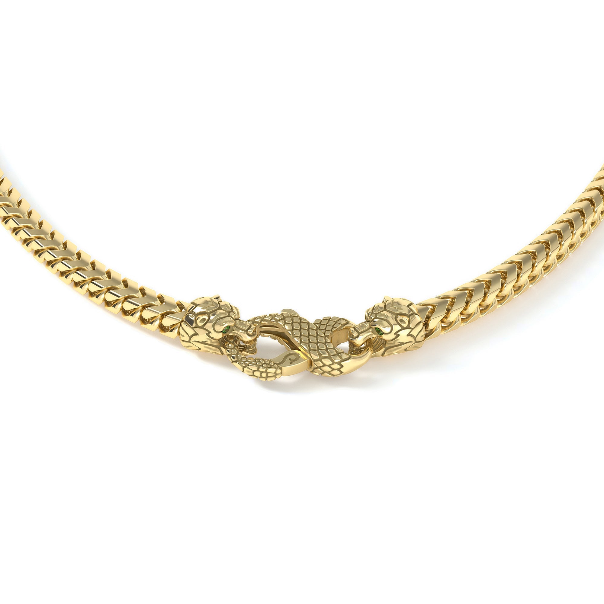 Each piece replaces the standard lobster clasp with our proprietary Snake Clasp, where a serpent locks through the open mouth of the predator. Long a symbol of wisdom, renewal, and eternal life, the serpent passing through the mouth—an ancient threshold of instinct, fear, and mortality—represents entering darkness, confronting the obstacle, and emerging unbroken and transformed. In the Stoic sense: fear loses its power when faced directly, and the obstacle is the way.