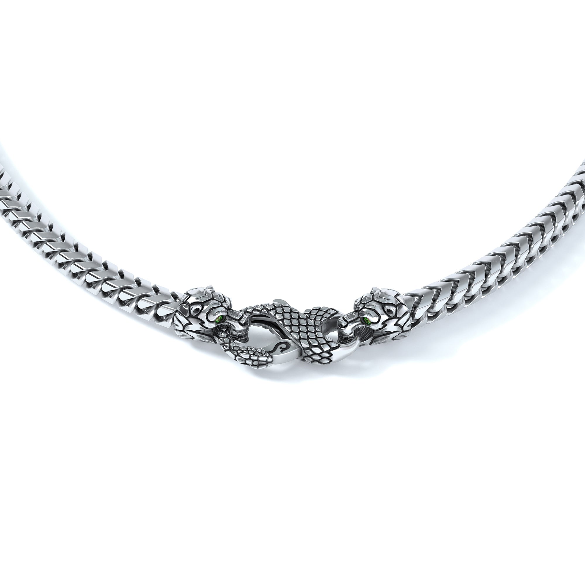 Each piece replaces the standard lobster clasp with our proprietary Snake Clasp, where a serpent locks through the open mouth of the predator. Long a symbol of wisdom, renewal, and eternal life, the serpent passing through the mouth—an ancient threshold of instinct, fear, and mortality—represents entering darkness, confronting the obstacle, and emerging unbroken and transformed. In the Stoic sense: fear loses its power when faced directly, and the obstacle is the way.