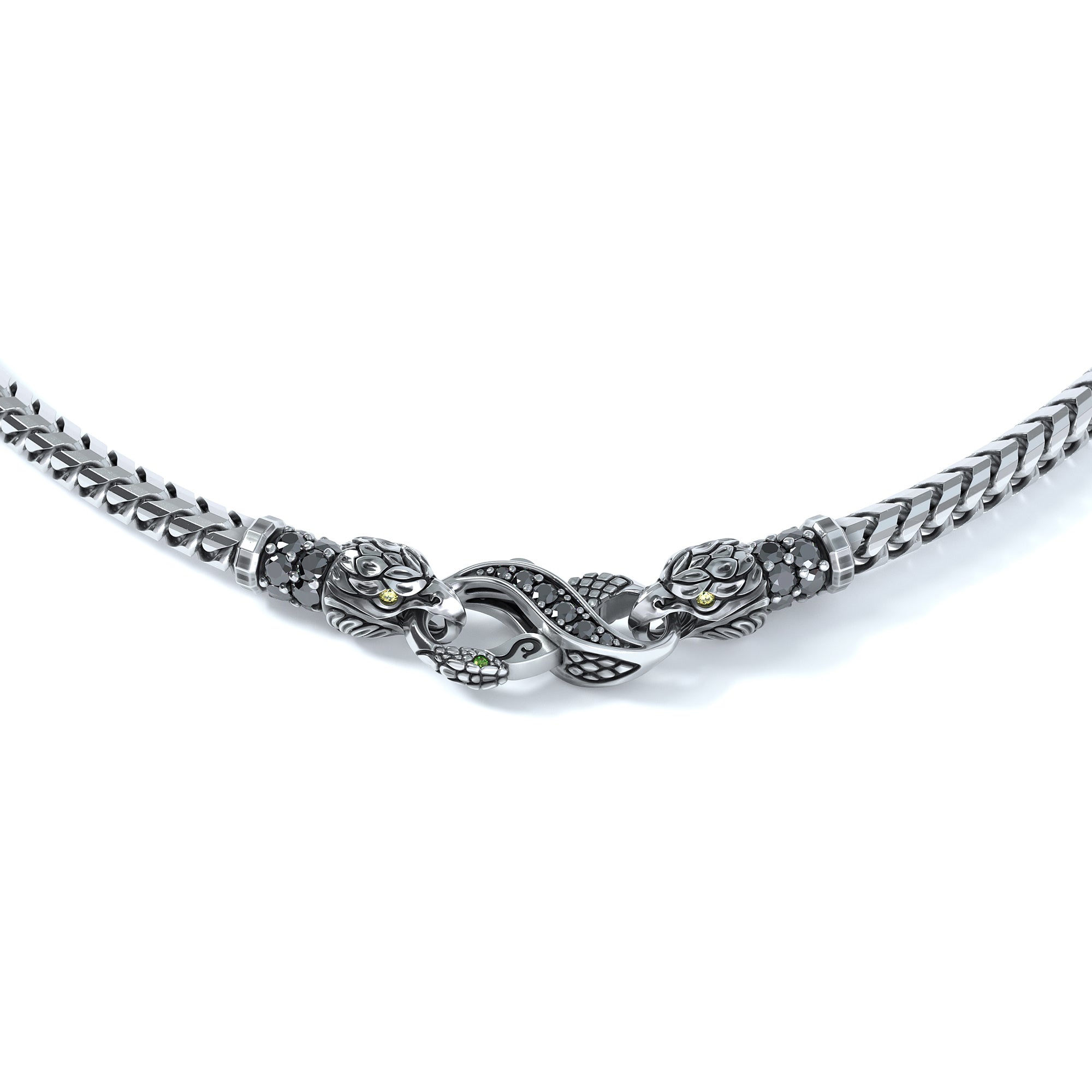 Silver Weight: ~6.0 grams Gemstone Quantity: 42 Round Brilliant-Cut Stones Gemstones Quality: Black Diamonds are Genuine, Colored Diamonds are Lab Grown, and Colored Stones are rated Excellent Gemstone Carats: ~1.55 ctw Head Dimensions: ~7mm wide x 8mm tall x 17mm long Snake Clasp Dimensions: ~9mm wide x 19mm long x 4.5mm thick (at thickest area) Chain Requirements: This clasp can be paired with most "round profile" chains measuring 3.5mm to 4.3mm in thickness.