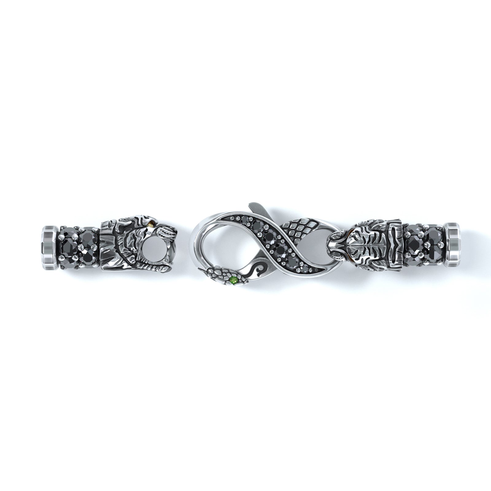 Each piece replaces the standard lobster clasp with our proprietary Snake Clasp, where a serpent locks through the open mouth of the predator. Long a symbol of wisdom, renewal, and eternal life, the serpent passing through the mouth—an ancient threshold of instinct, fear, and mortality—represents entering darkness, confronting the obstacle, and emerging unbroken and transformed. In the Stoic sense: fear loses its power when faced directly, and the obstacle is the way.