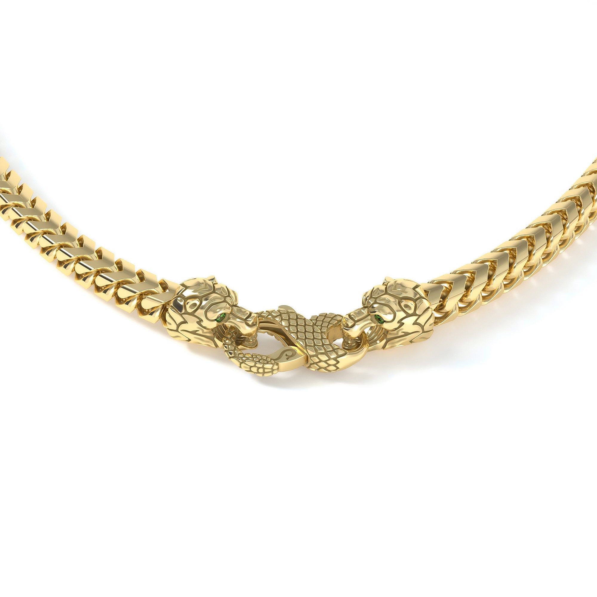 The Signature Clasp Collection transforms an overlooked eyesore into a statement of symbolism and strength. Instead of generic factory end caps that disrupt the flow of a fine chain, these sculpted finishes feature bold predator forms—executed with Proclamation’s signature precision.