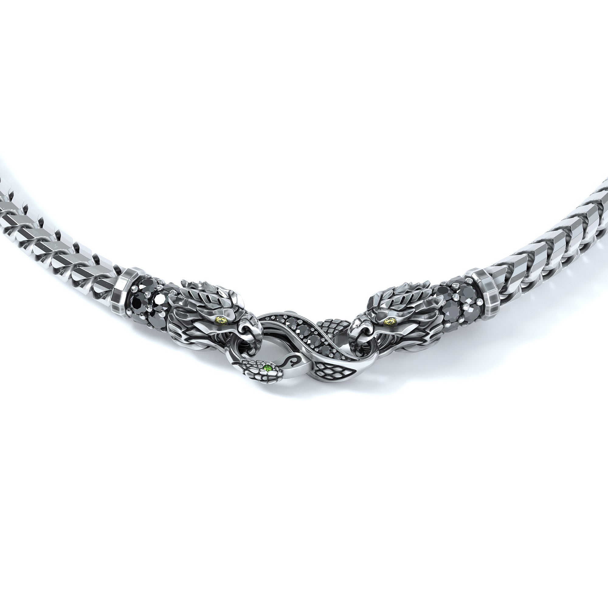 Silver Weight: ~8.5 grams Gemstone Quantity: 42 Round Brilliant-Cut Stones Gemstones Quality: Black Diamonds are Genuine, Colored Diamonds are Lab Grown, and Colored Stones are rated Excellent Gemstone Carats: ~2.60 ctw Head Dimensions: ~8mm wide x 9.5mm tall x 20mm long Snake Clasp Dimensions: ~9mm wide x 19mm long x 4.5mm thick (at thickest area) Chain Requirements: This clasp can be paired with most "round profile" chains measuring 4.5mm to 5.3mm in thickness.