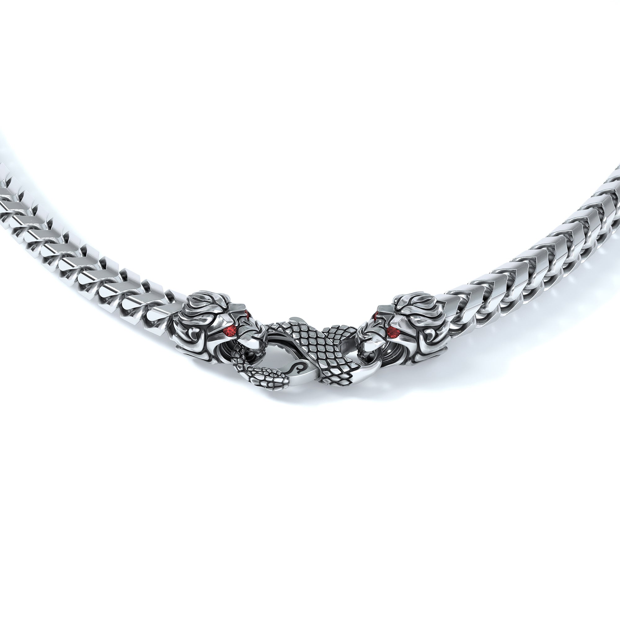 Each piece replaces the standard lobster clasp with our proprietary Snake Clasp, where a serpent locks through the open mouth of the predator. Long a symbol of wisdom, renewal, and eternal life, the serpent passing through the mouth—an ancient threshold of instinct, fear, and mortality—represents entering darkness, confronting the obstacle, and emerging unbroken and transformed. In the Stoic sense: fear loses its power when faced directly, and the obstacle is the way.