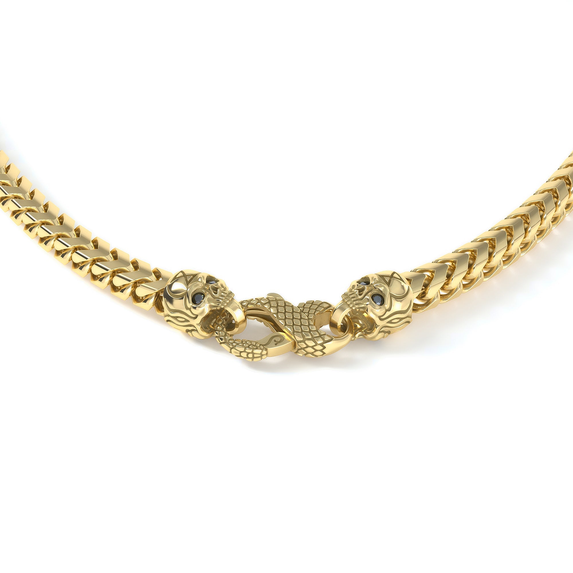 Each piece replaces the standard lobster clasp with our proprietary Snake Clasp, where a serpent locks through the open mouth of the predator. Long a symbol of wisdom, renewal, and eternal life, the serpent passing through the mouth—an ancient threshold of instinct, fear, and mortality—represents entering darkness, confronting the obstacle, and emerging unbroken and transformed. In the Stoic sense: fear loses its power when faced directly, and the obstacle is the way.