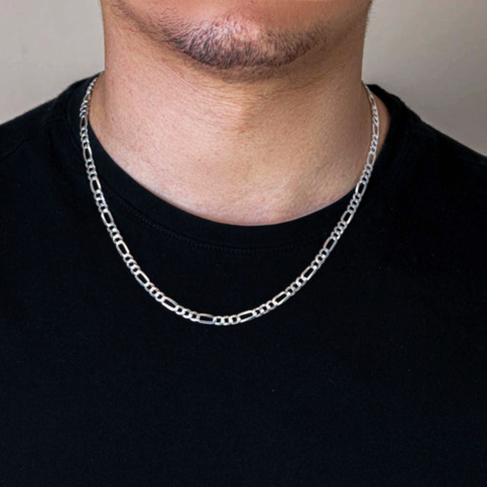 If you’re looking for the best silver Figaro chain for guys, look no further. This silver necklace for men shines just enough to get the right attention and is the perfect mens designer chain for any occasion. Our 100% real silver chain is strong, featuring solid silver links that will stand the test of time.