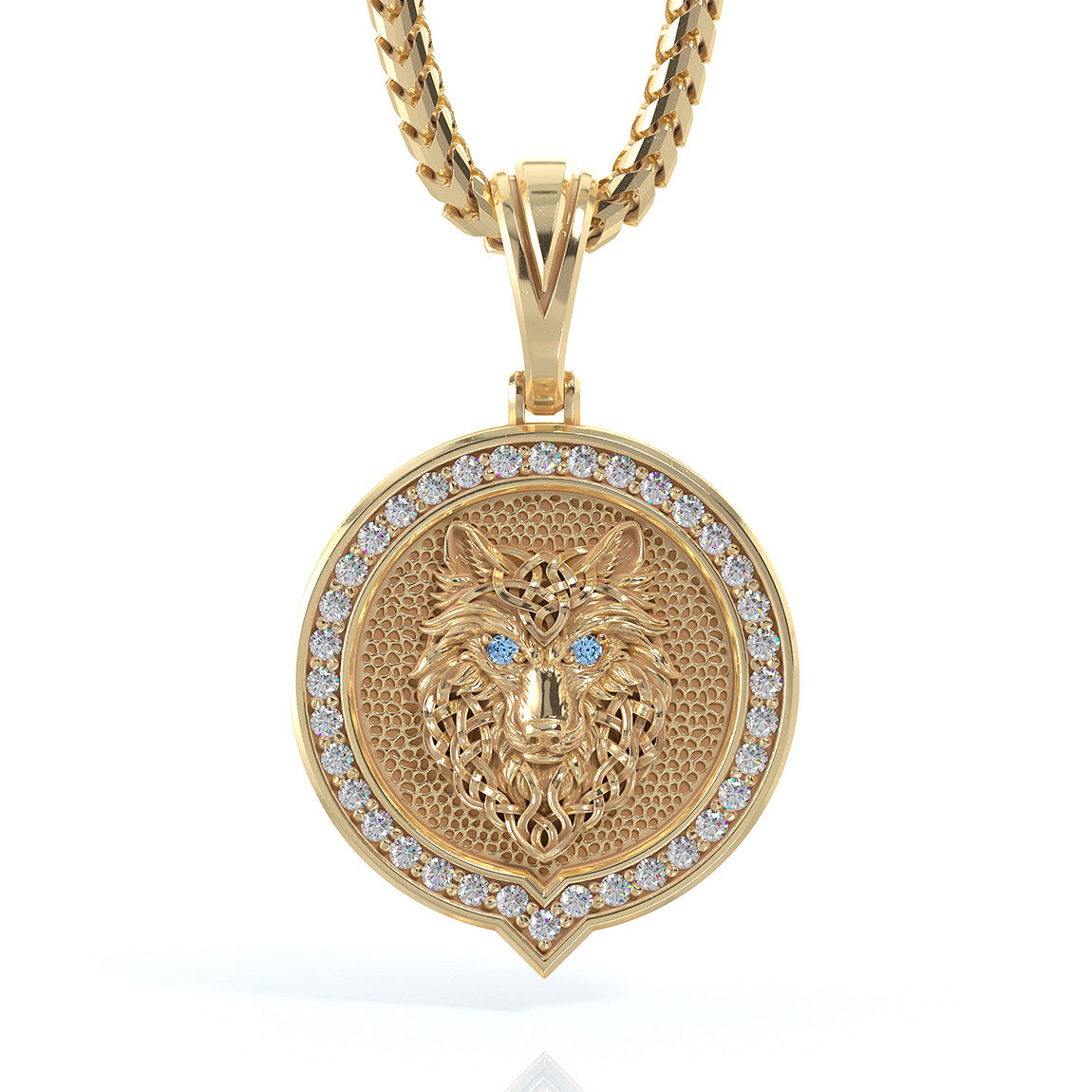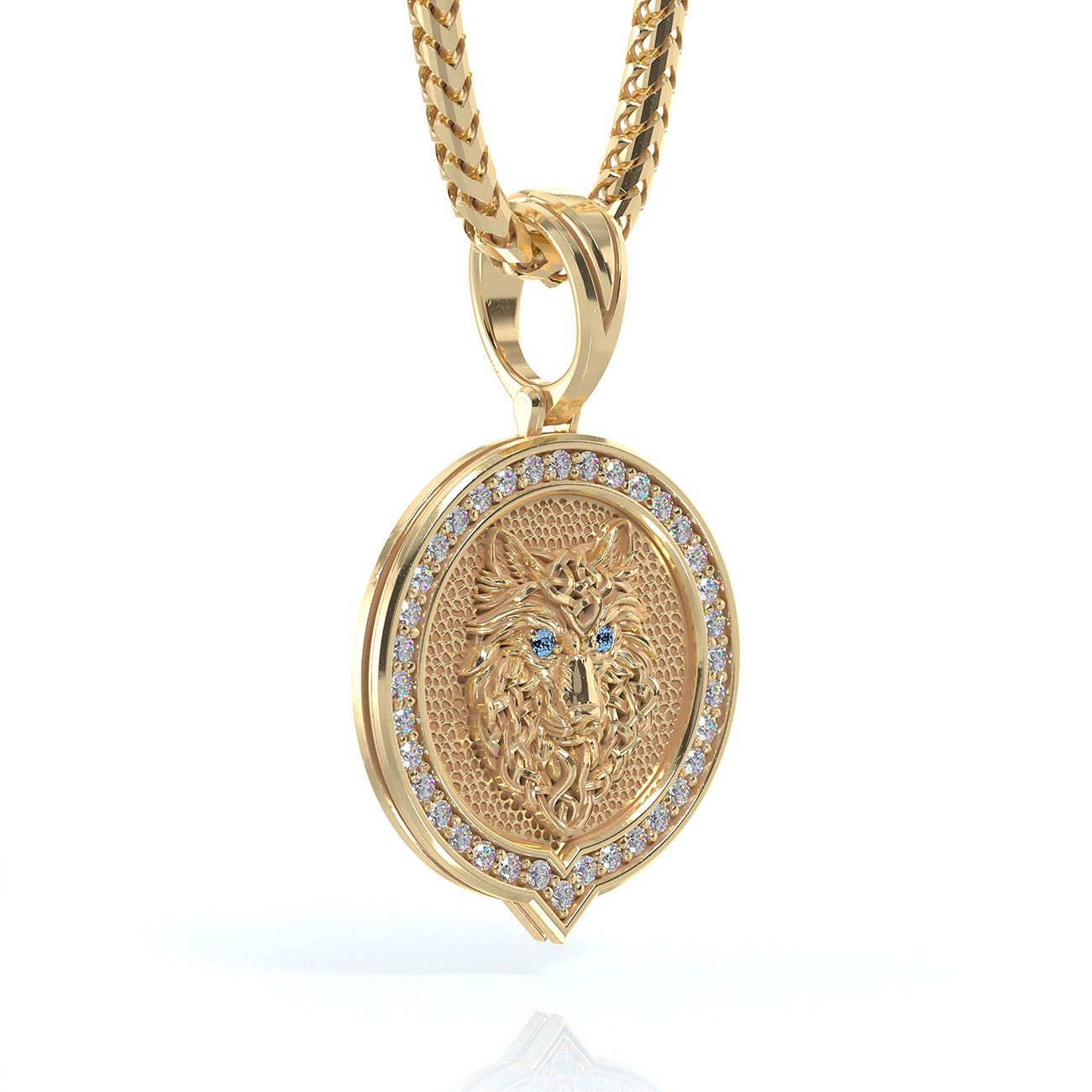 The border is lined with top quality lab-grown diamonds, a bright halo of faith and unshaken resolve. At the center stands the wolf, eyes lit with ice-blue diamonds — the cold, piercing gaze of a predator who sees the truth without illusion. APEX is not just strength; it is awareness, instinct, and the sovereign clarity of the one who leads the pack because he must.
