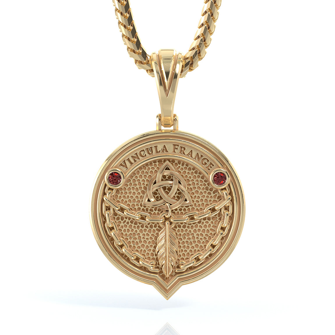 There’s a moment in every man’s life when he refuses to bow any longer to the forces that once held him down. This solid gold pendant captures that moment so you can carry the mindset with you daily. Its form is a circle sharpened to a point — purpose-driven, decisive, and forged to cut through distraction and doubt.