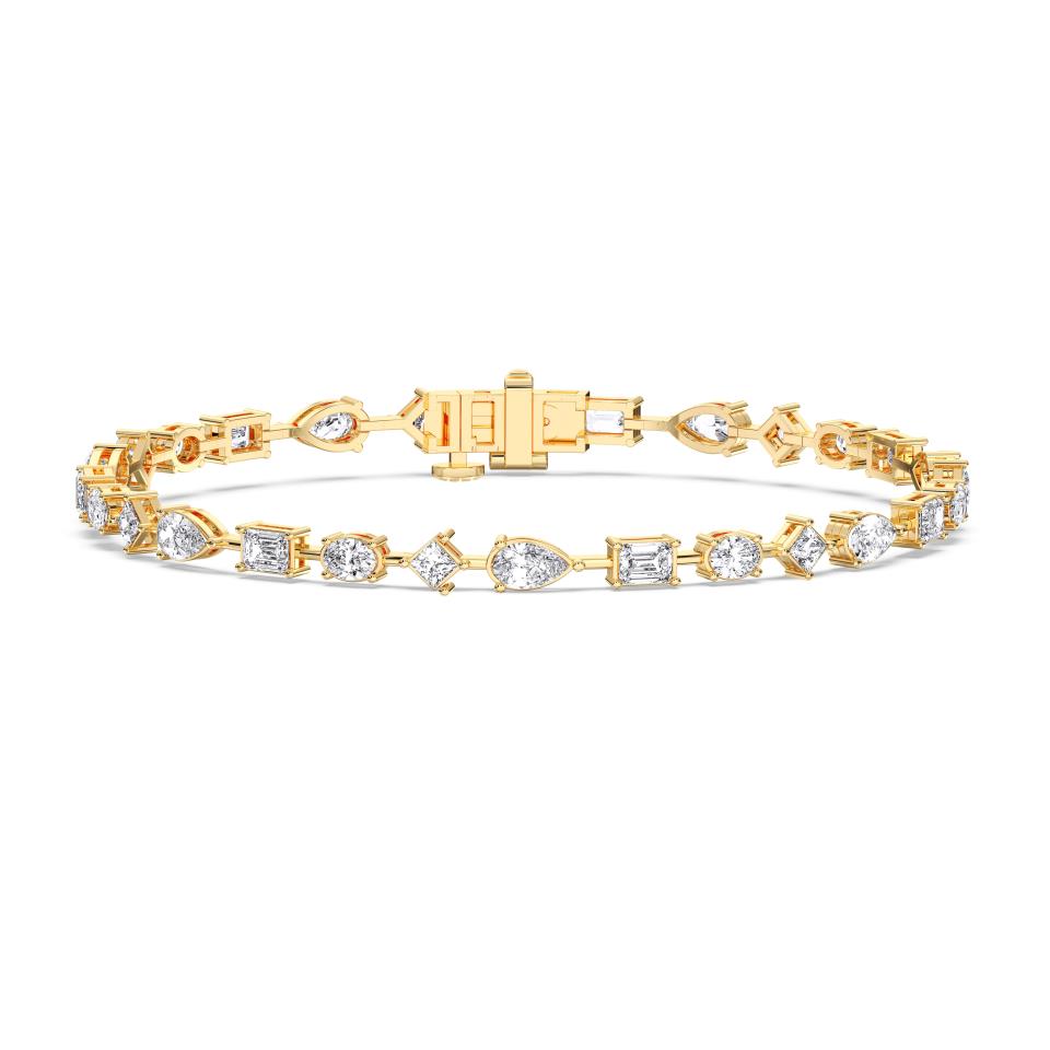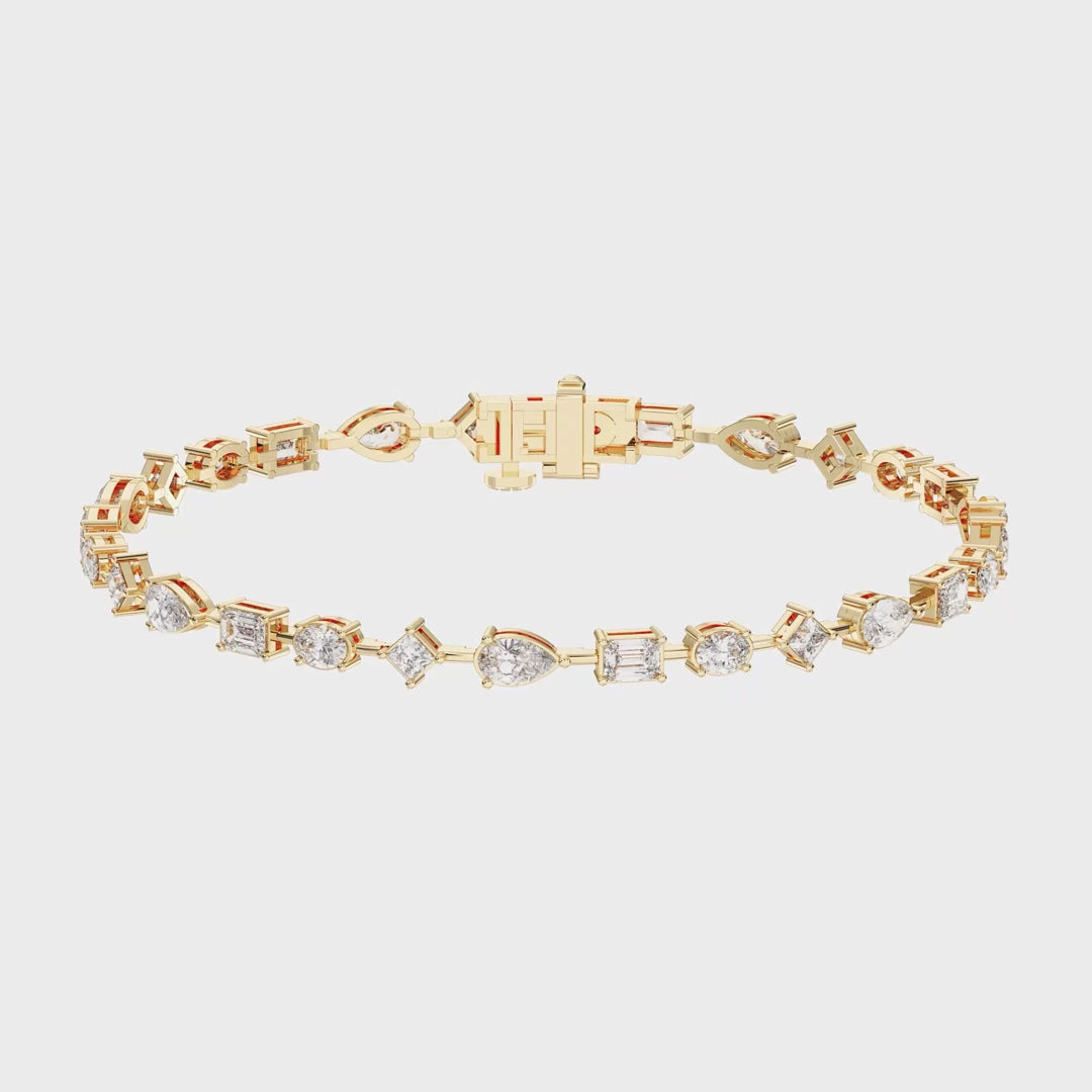 Handcrafted from solid 14k gold, the Multishape Tennis Bracelet is a dazzling celebration of modern elegance and individuality. Showcasing a brilliant sequence of lab-grown diamonds in a variety of cuts — including round, pear, emerald, princess, oval, and marquise — this bracelet delivers a symphony of light and sophistication.