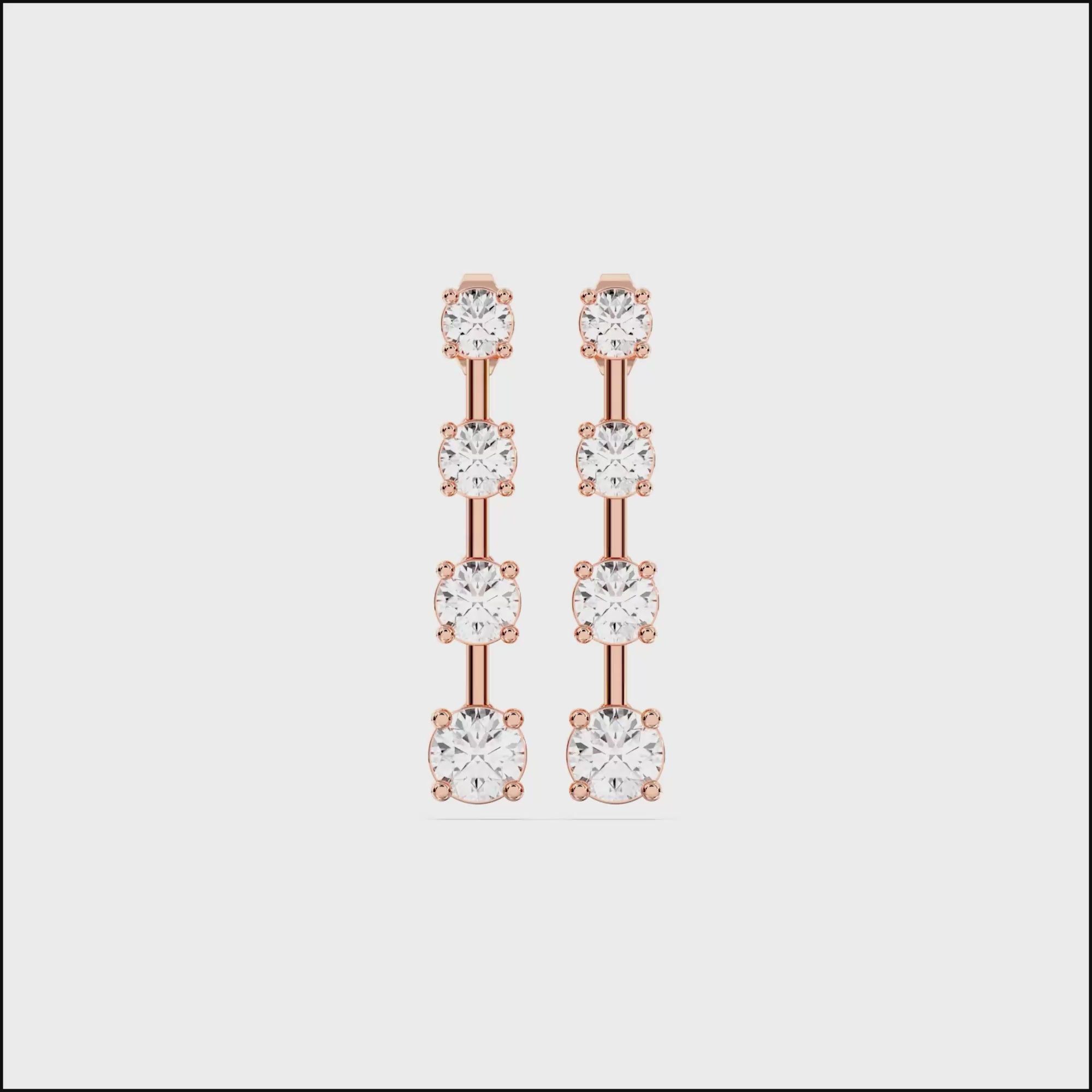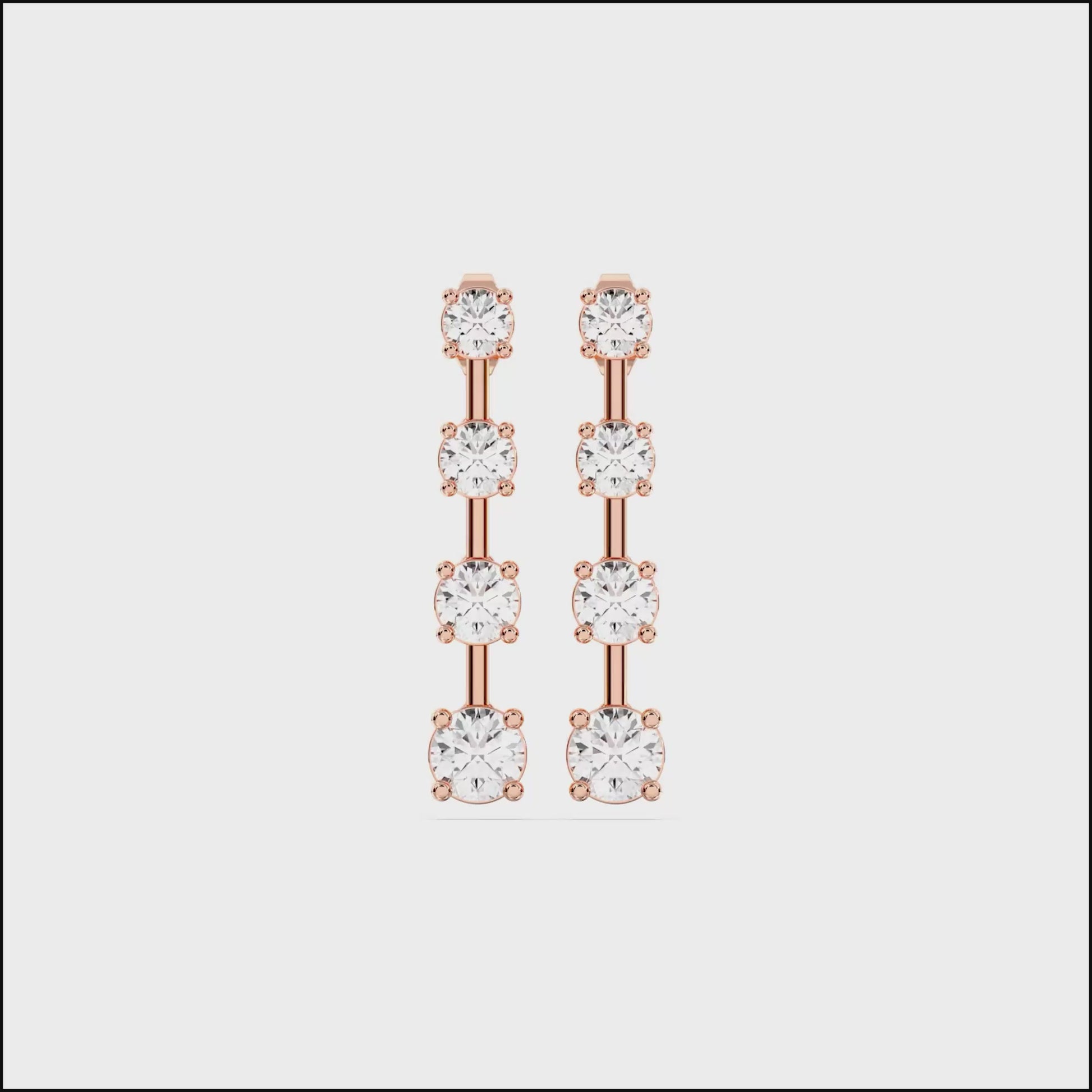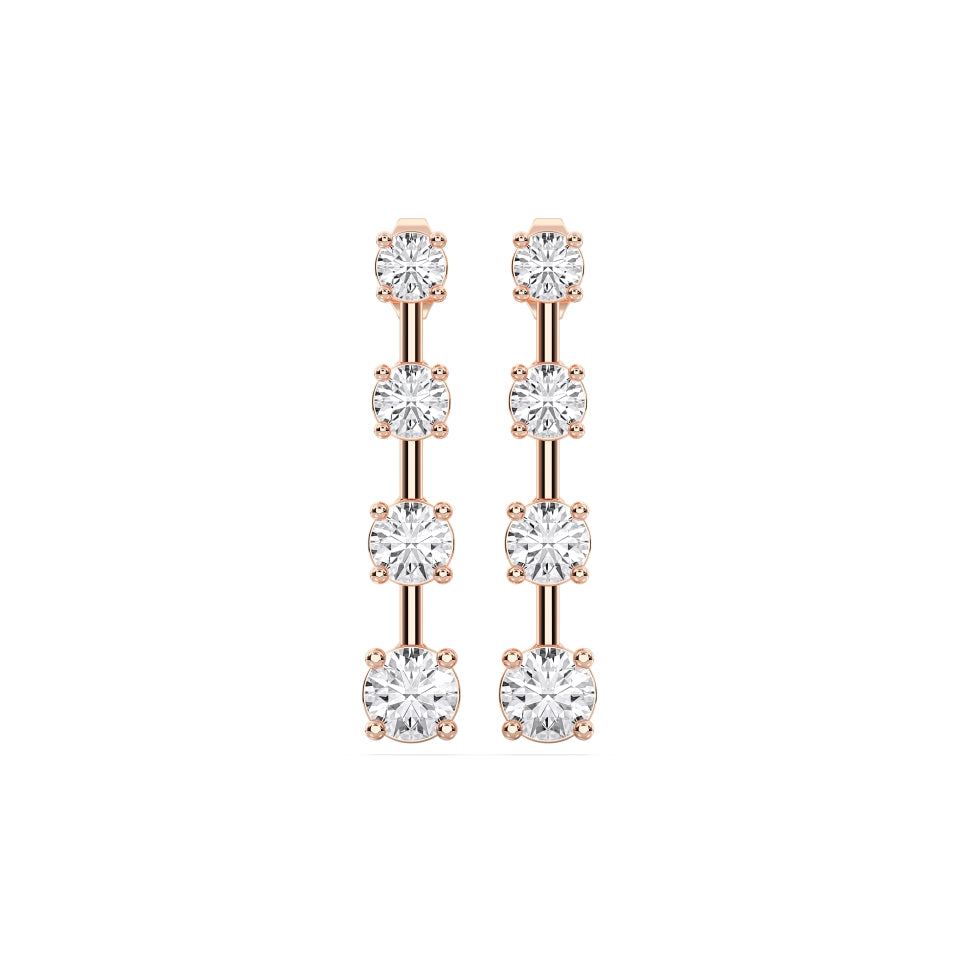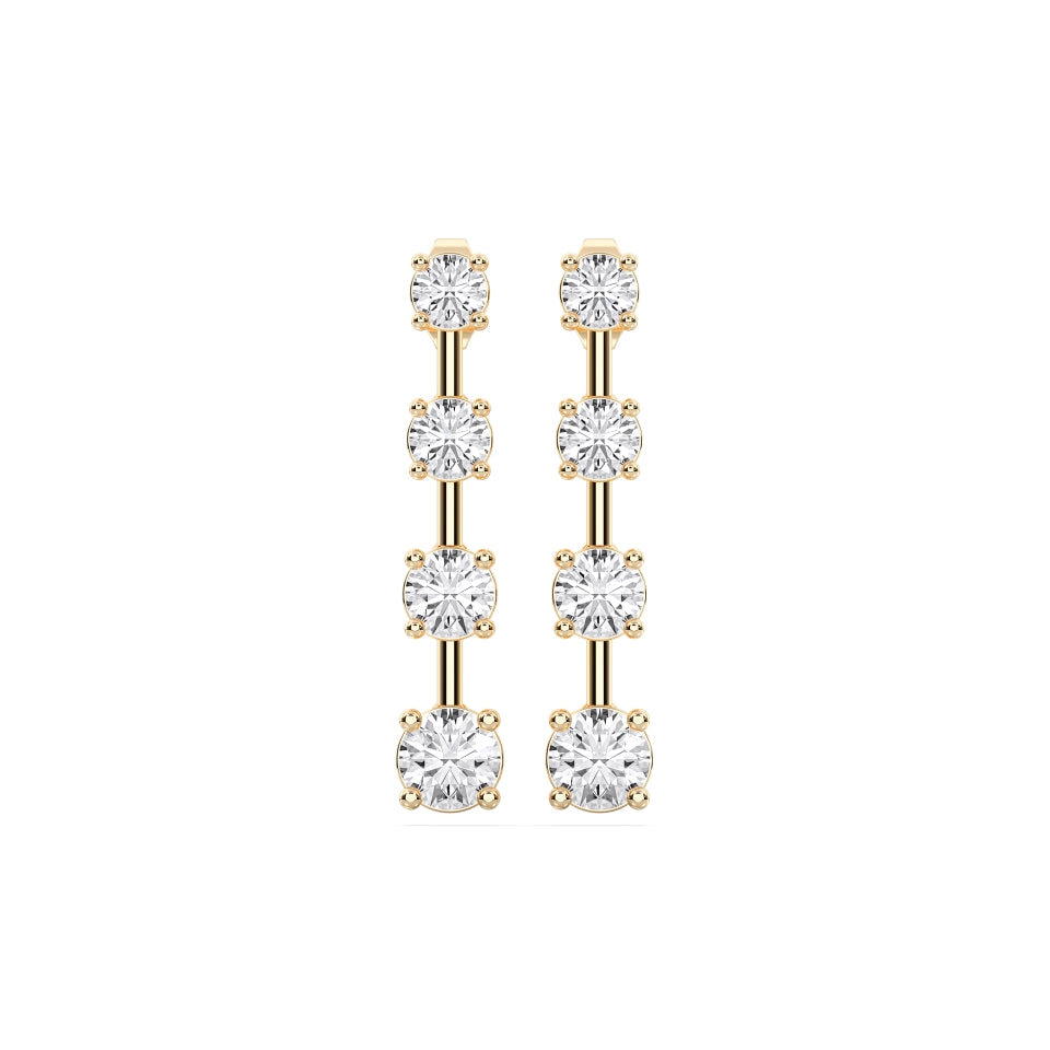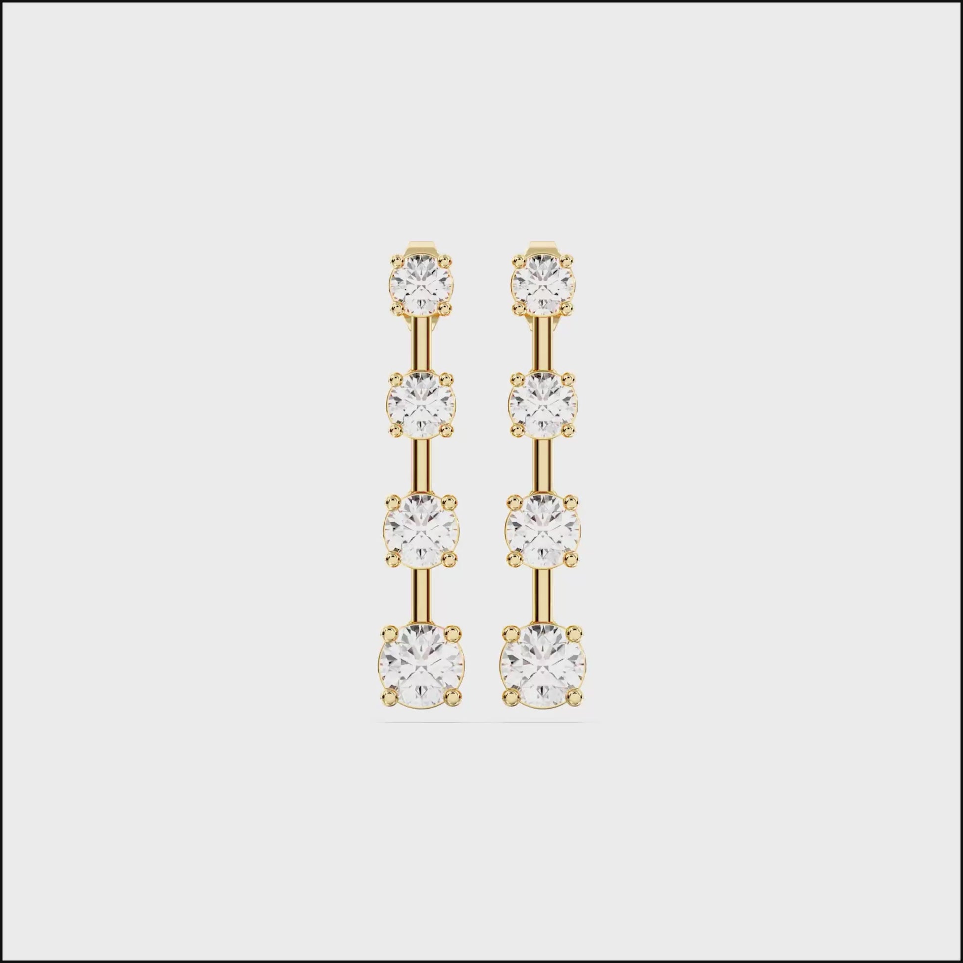 Handcrafted from solid 14k gold, the Graduating Round Drop Earrings offer a timeless balance of simplicity and radiance. Each earring showcases a vertical cascade of round brilliant-cut lab-grown diamonds, graduating gracefully in size to create a striking sense of movement and light.