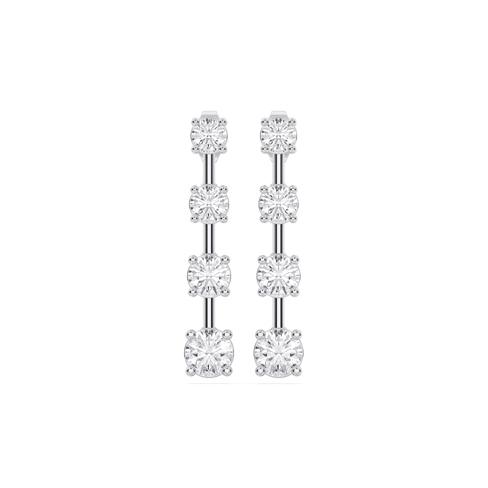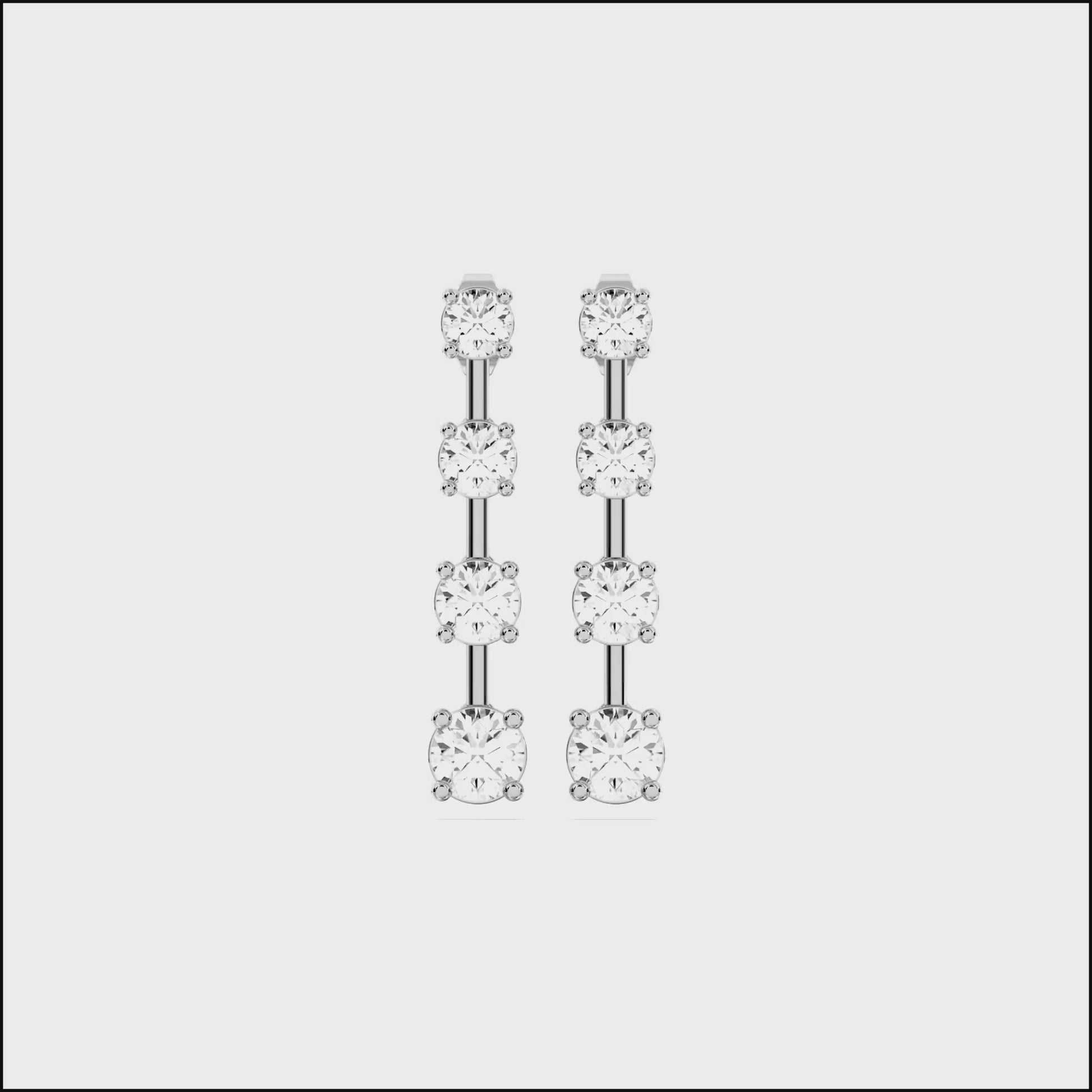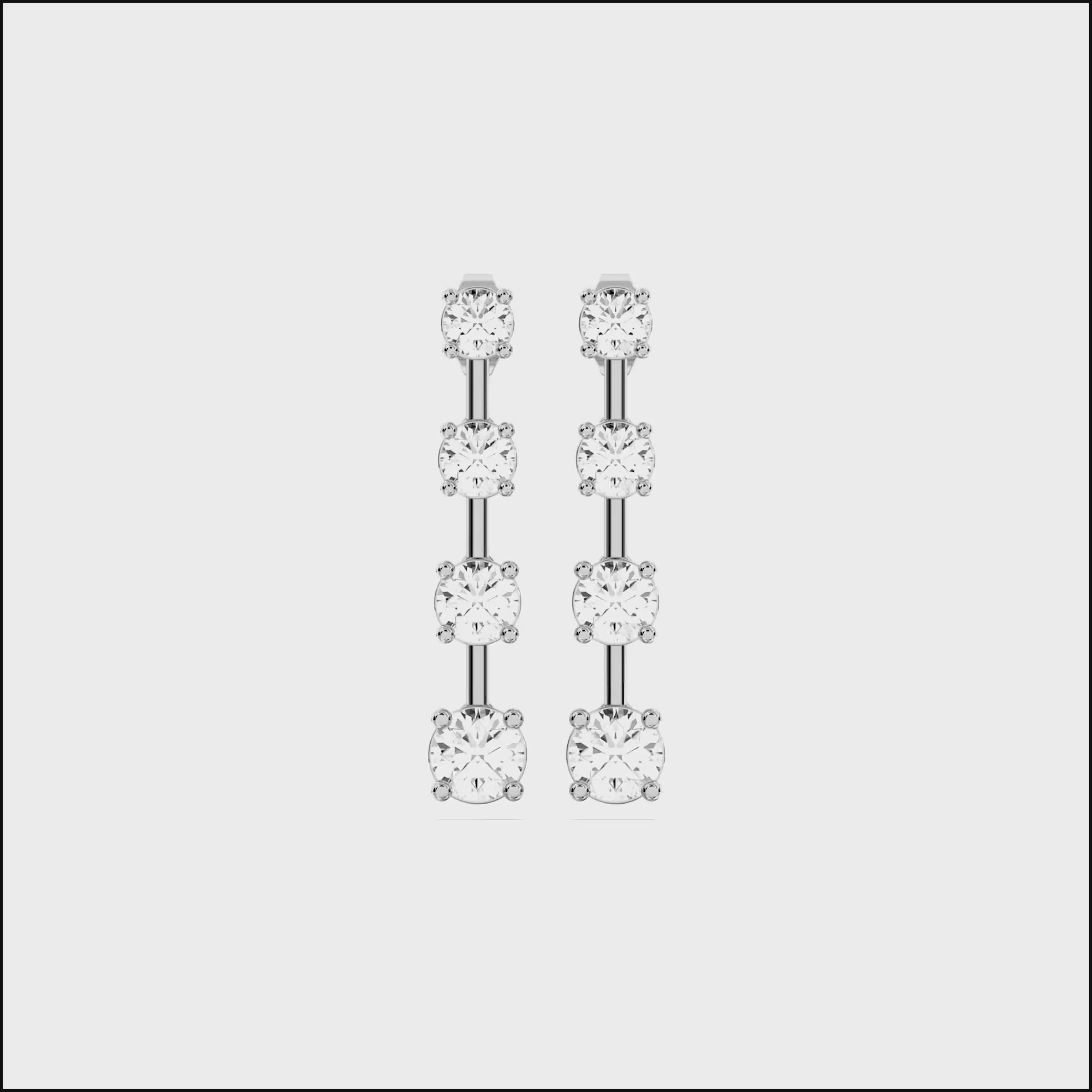 The seamless drop design accentuates the natural sparkle of each diamond, offering a refined and versatile statement perfect for both day and evening wear. The minimalist prong setting ensures maximum brilliance while maintaining a delicate, floating appearance.