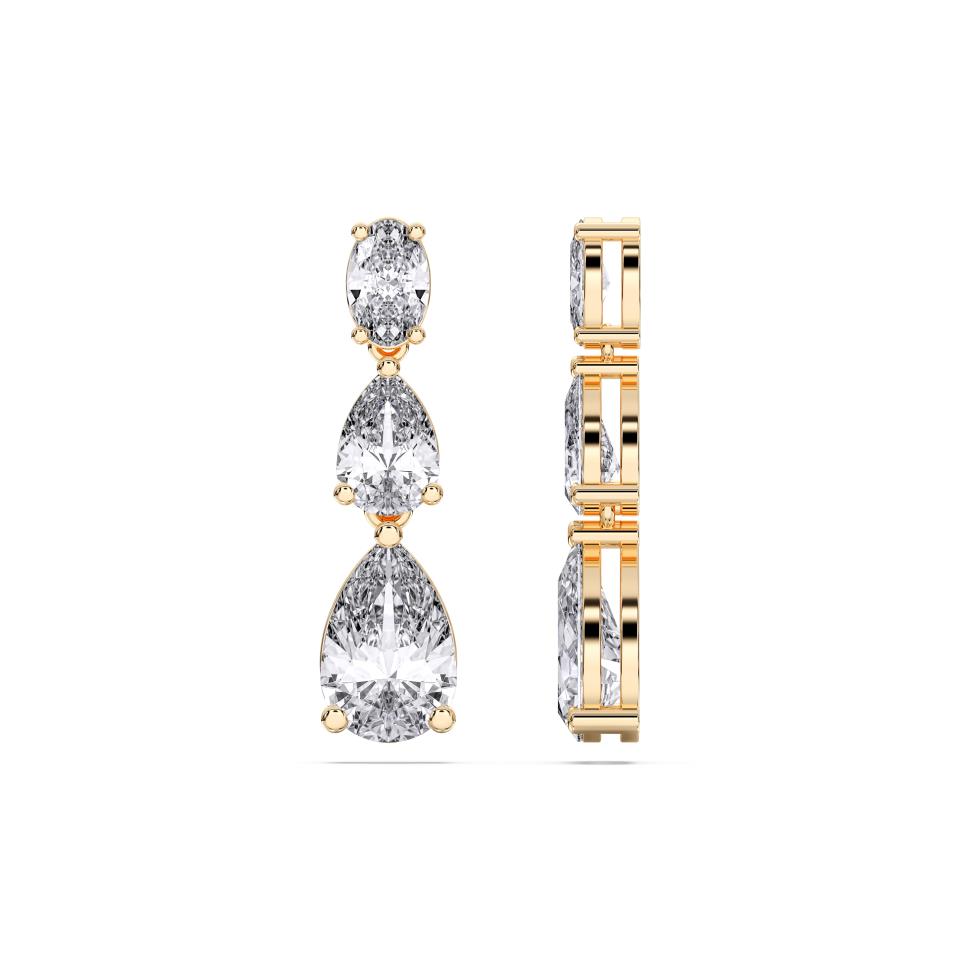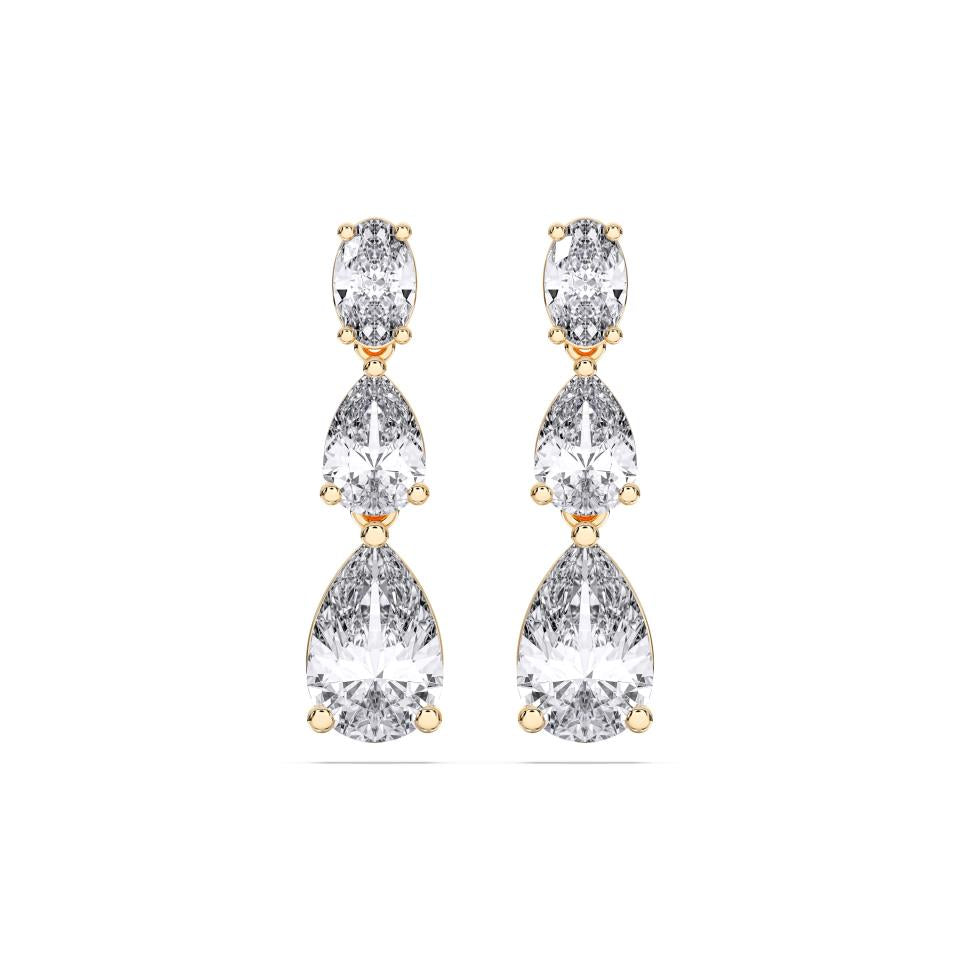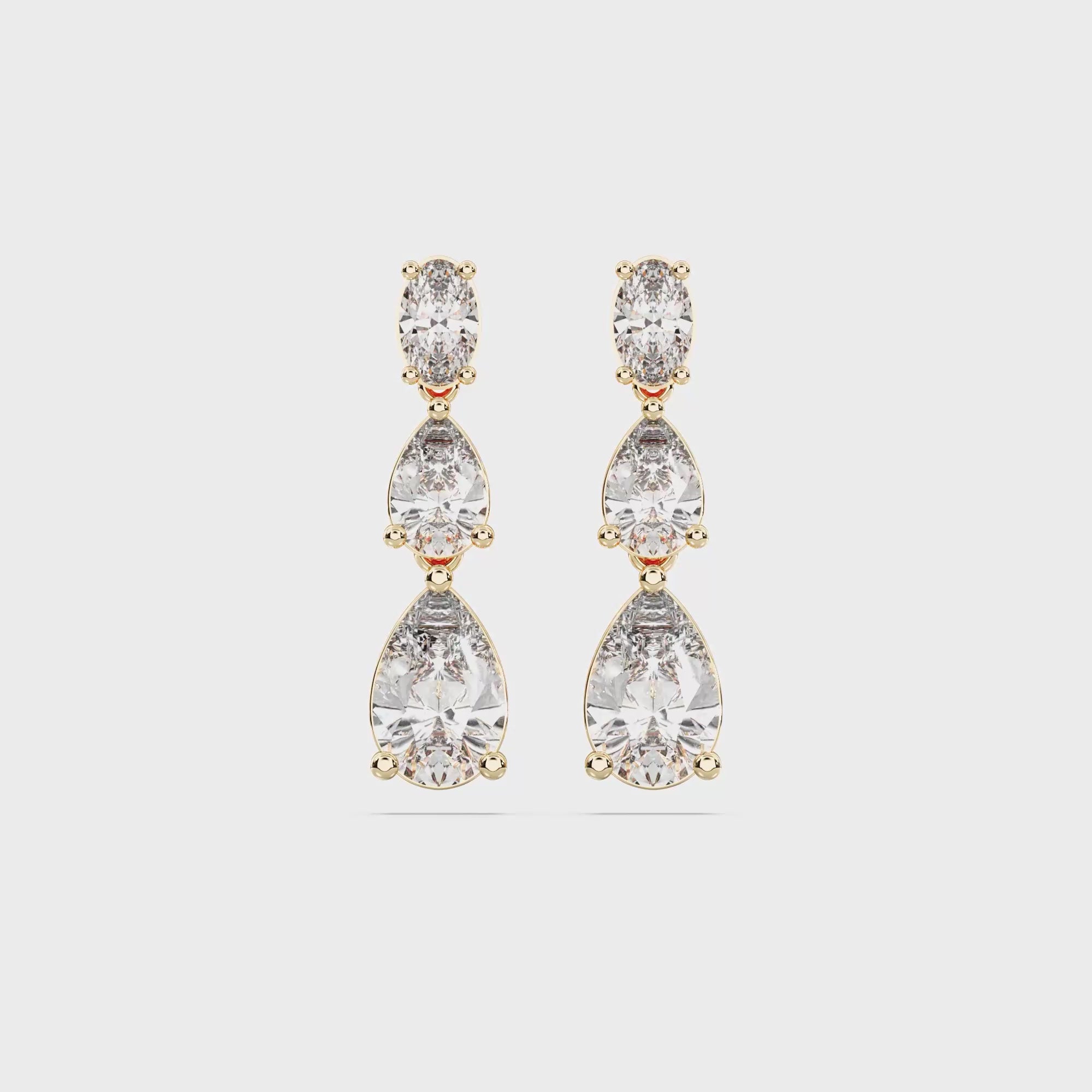 Expertly handcrafted from solid 14k gold, the Graduating Oval and Pear Tear Drop Earrings epitomize elegance in motion. These captivating earrings feature a trio of lab-grown diamonds in oval and pear shapes, gracefully arranged in a graduated drop that elongates the neckline and captures light from every angle.