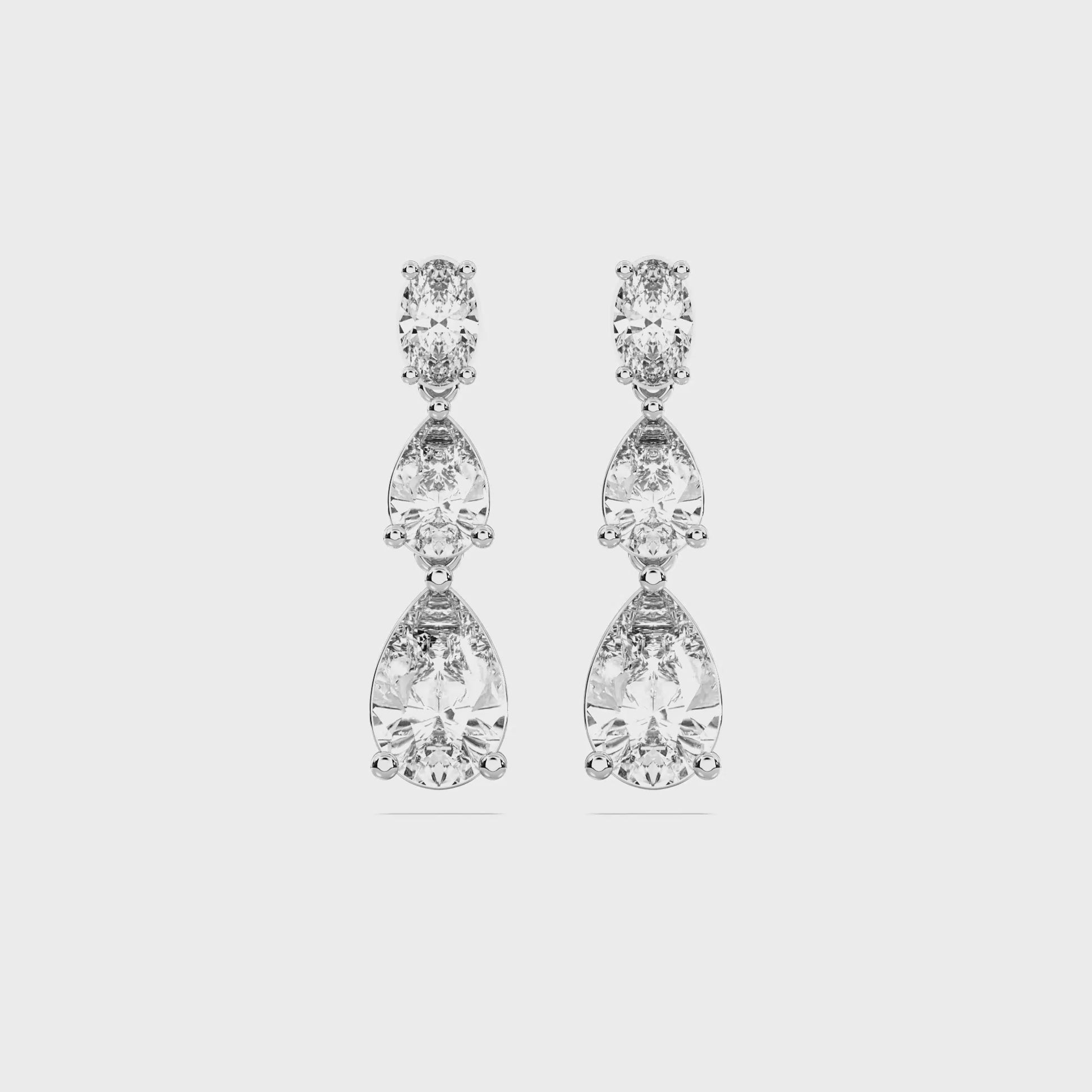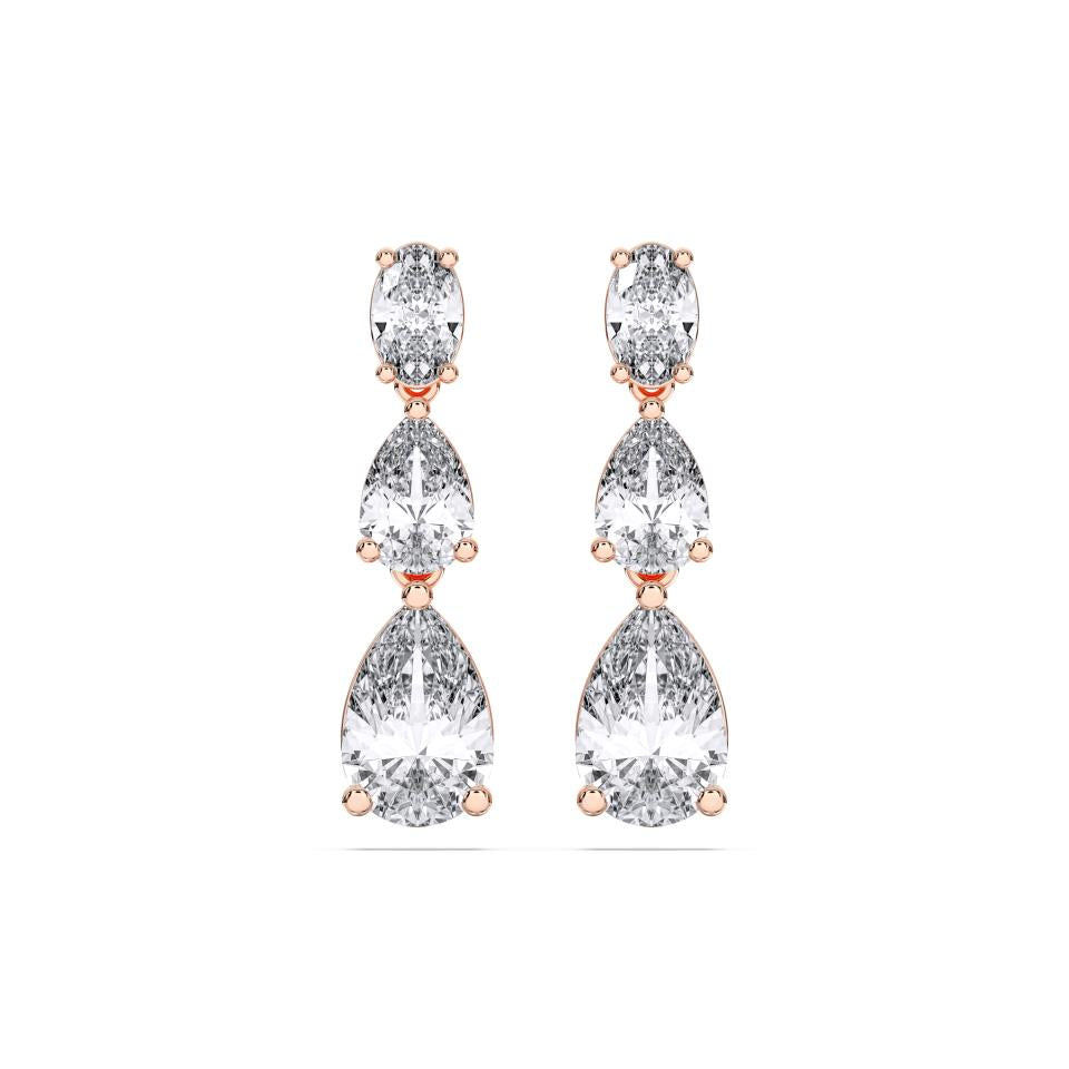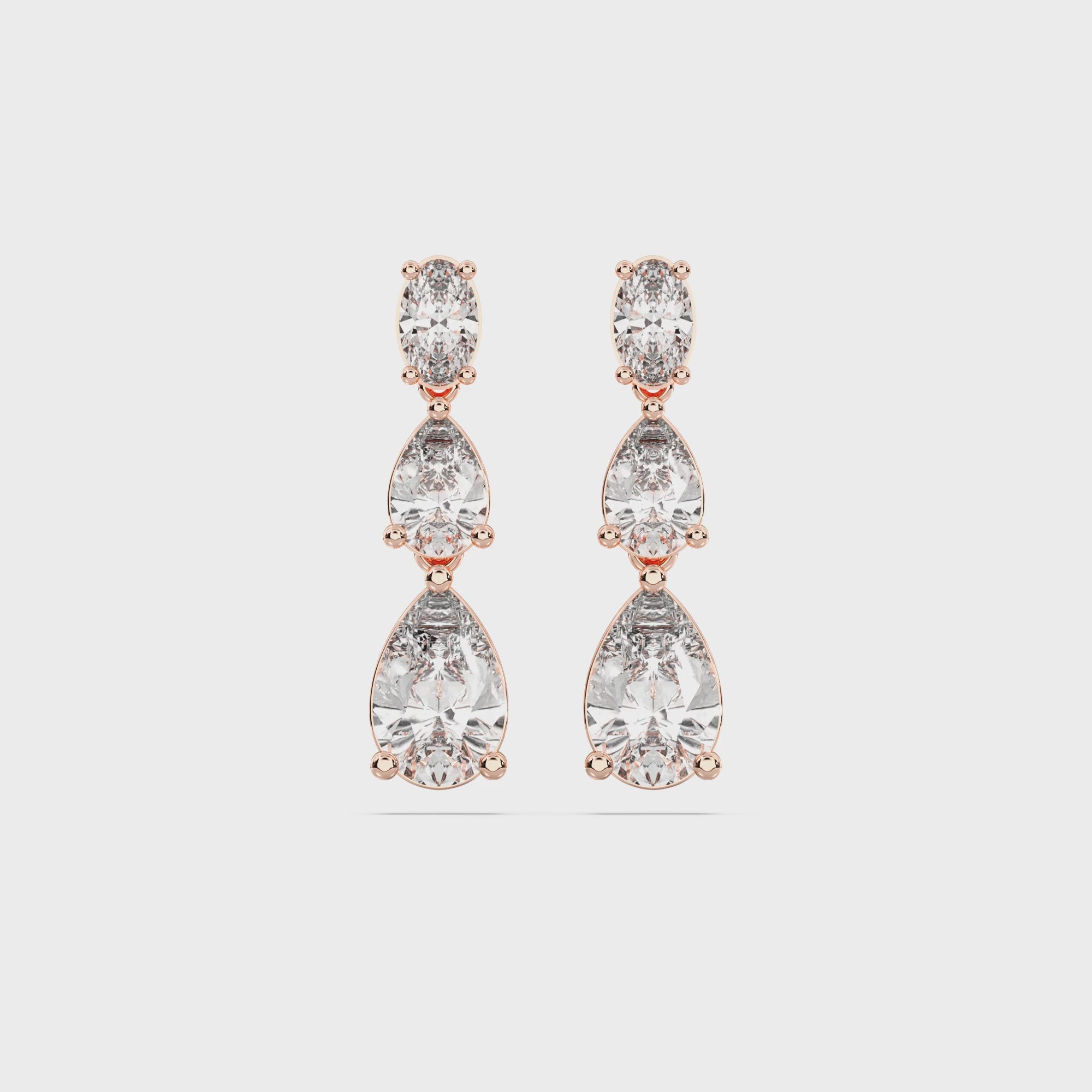 Expertly handcrafted from solid 14k gold, the Graduating Oval and Pear Tear Drop Earrings epitomize elegance in motion. These captivating earrings feature a trio of lab-grown diamonds in oval and pear shapes, gracefully arranged in a graduated drop that elongates the neckline and captures light from every angle.