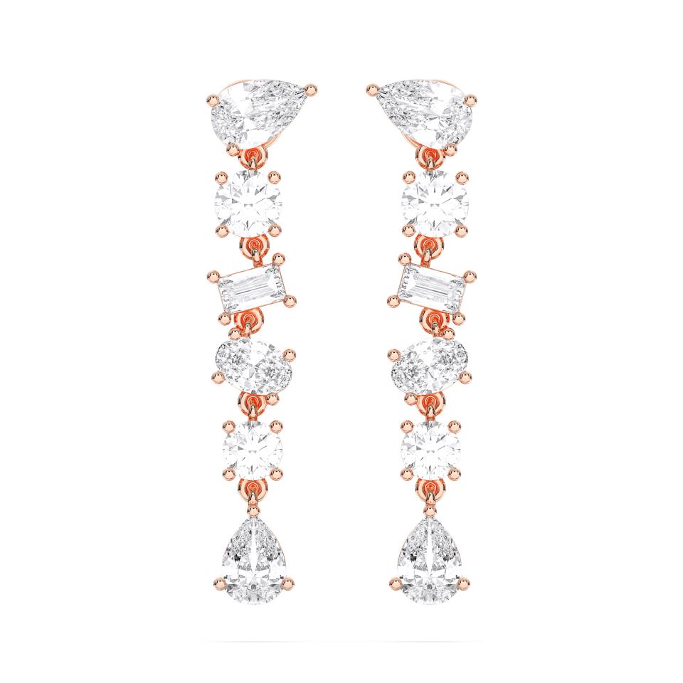 The alternating silhouettes highlight the brilliance and contrast of each cut, offering a dynamic design that transitions seamlessly from day to night. With their refined linear form and fluid movement, these earrings bring a touch of architectural beauty and timeless allure to any ensemble.
