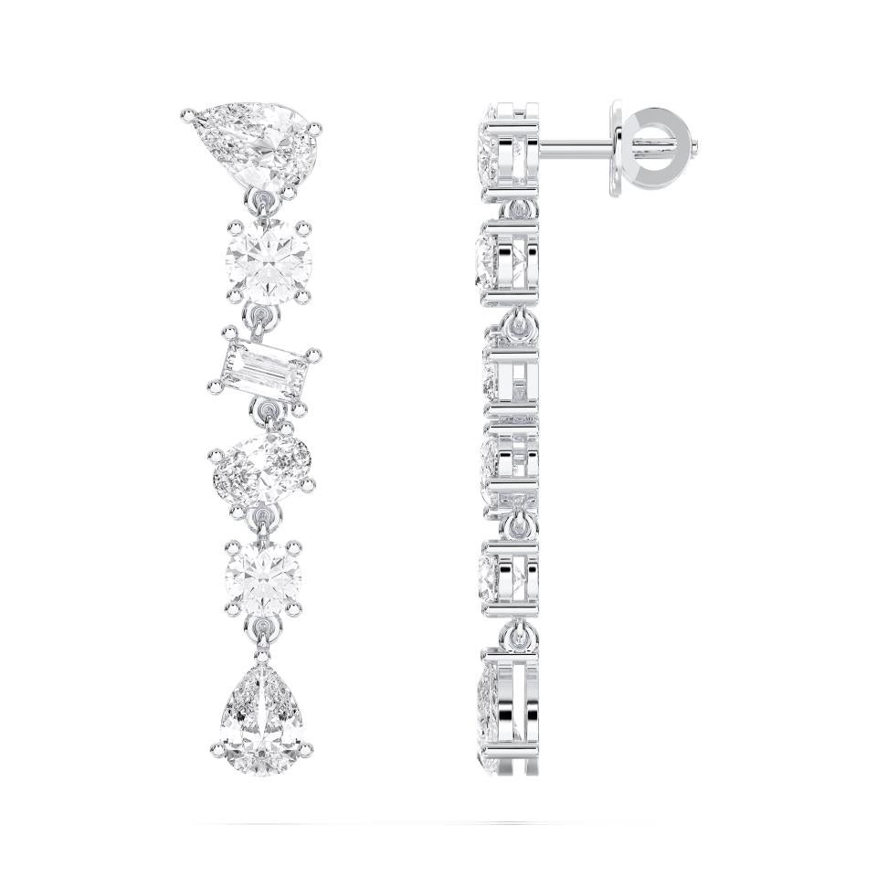 Your Mixed Shape Drop Earrings will arrive in our signature luxury packaging, including a velvet-lined display box, premium polishing cloth, and a certificate of authenticity. Standard orders ship within 10 business days. Customizations — such as metal color or carat adjustments — are made-to-order and may require 4–6 weeks for completion.