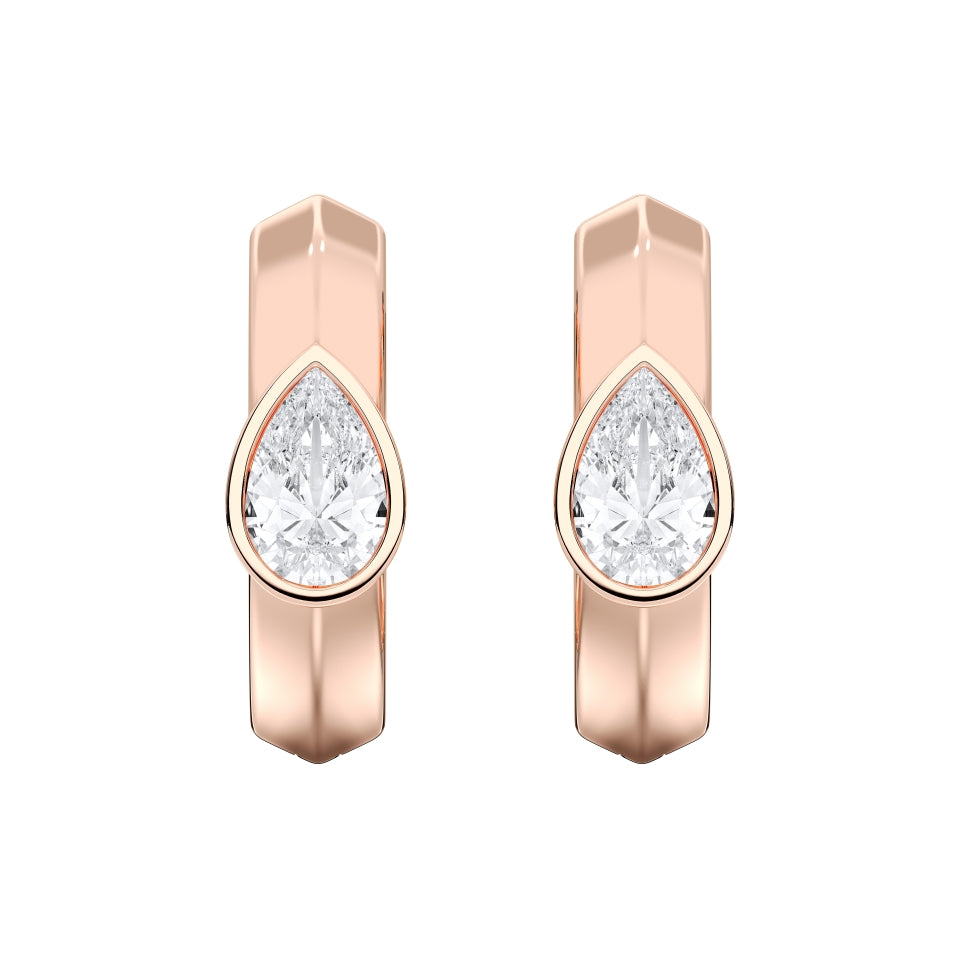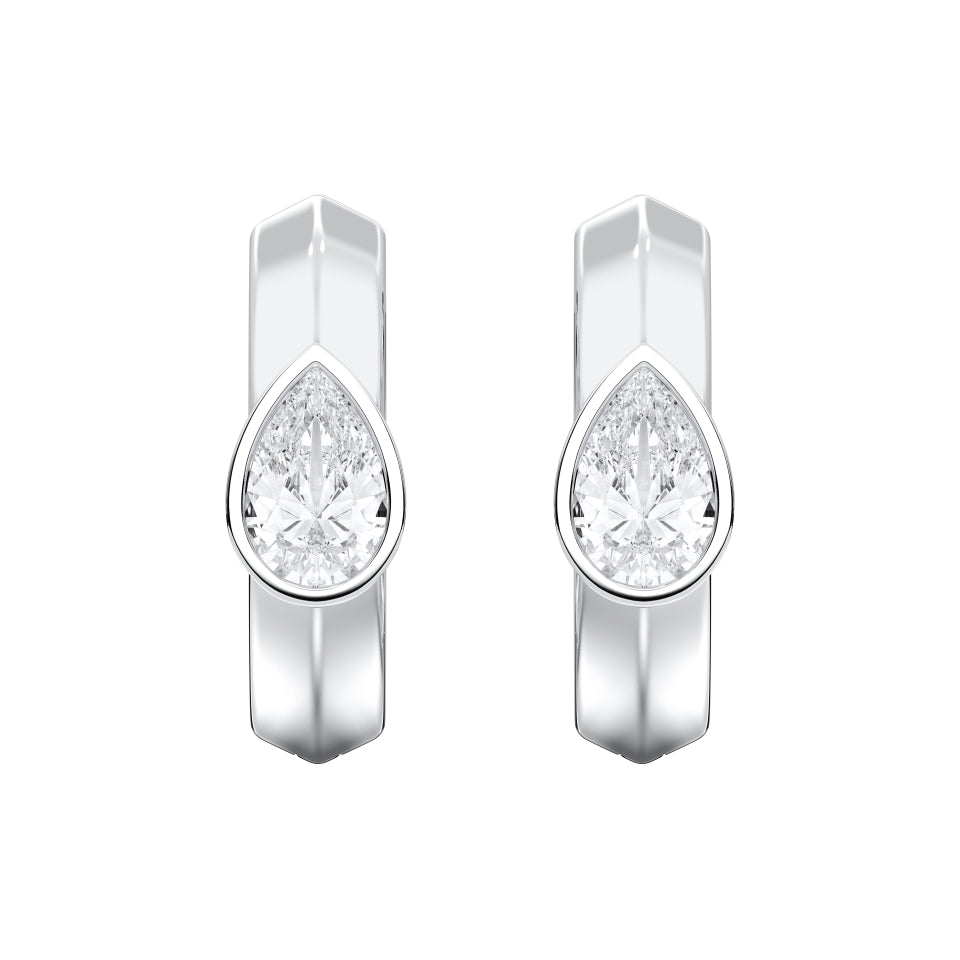 Handcrafted from solid 14k gold, the Pear Bezel Hoops showcase a sophisticated balance of modern minimalism and radiant elegance. Each hoop features a pear-cut lab-grown diamond encased in a sleek bezel setting, designed to enhance the diamond’s natural brilliance while offering a smooth, contemporary finish.