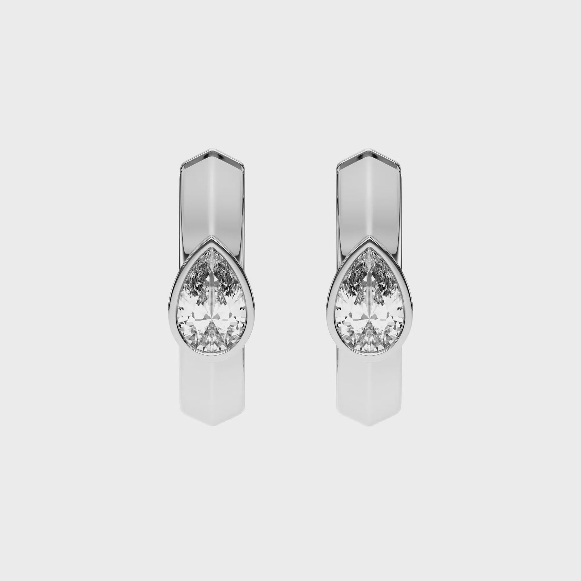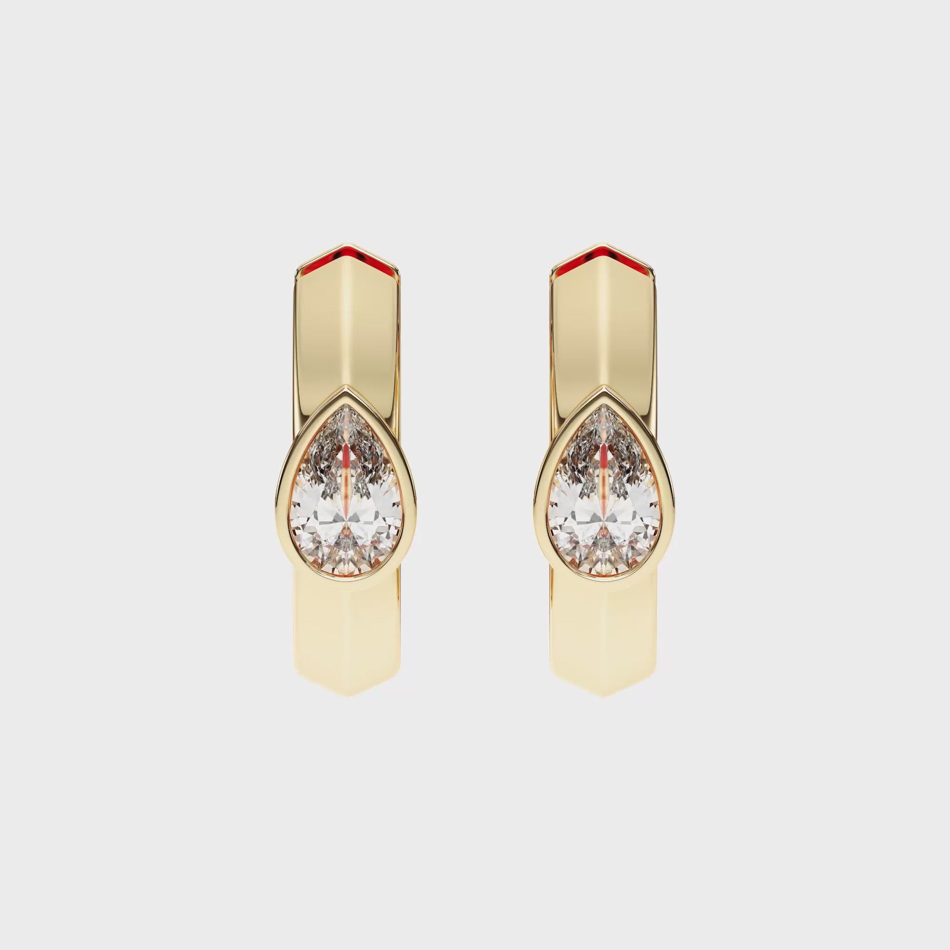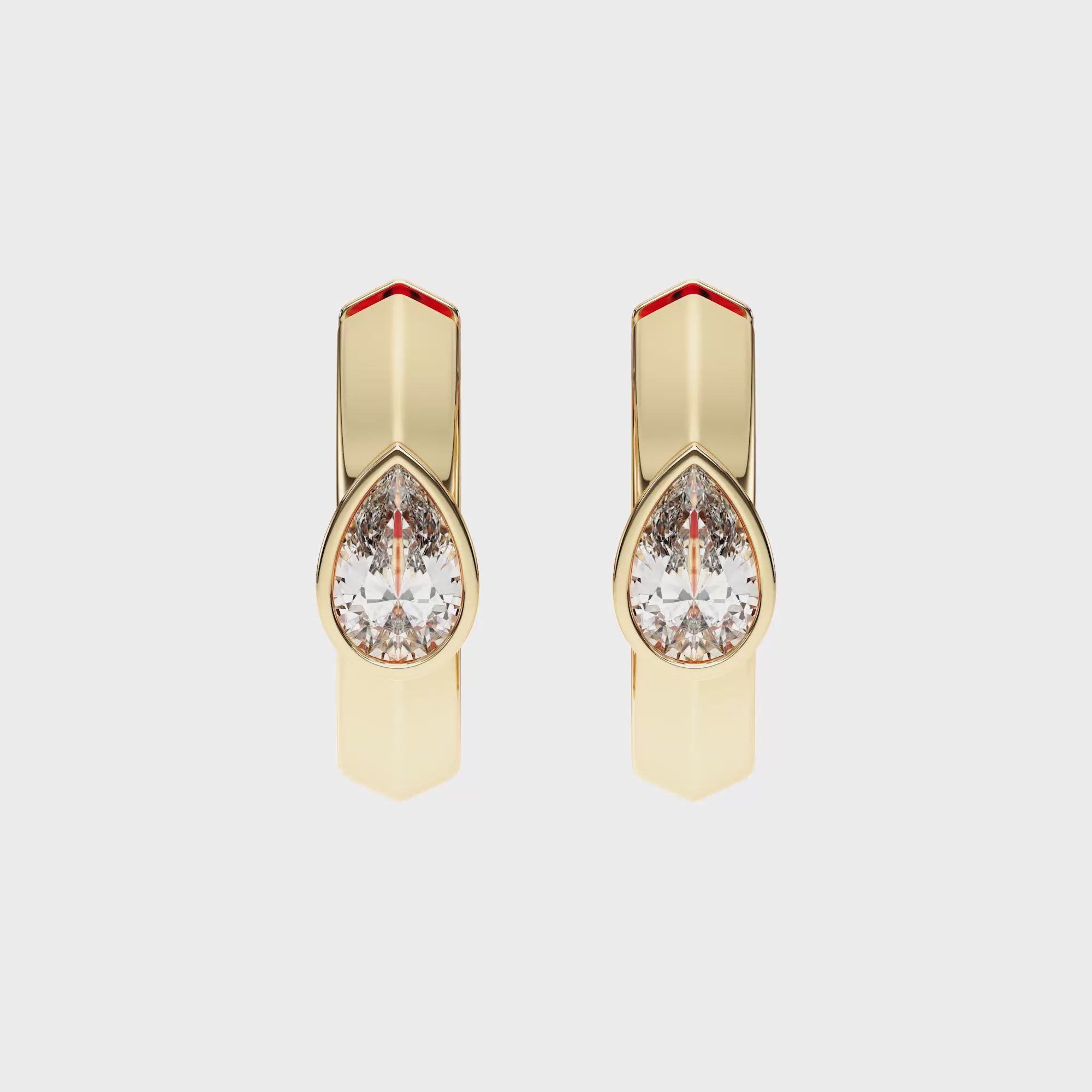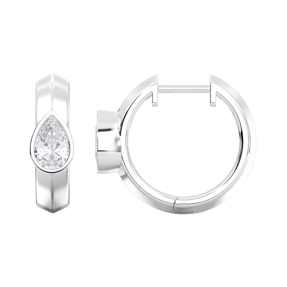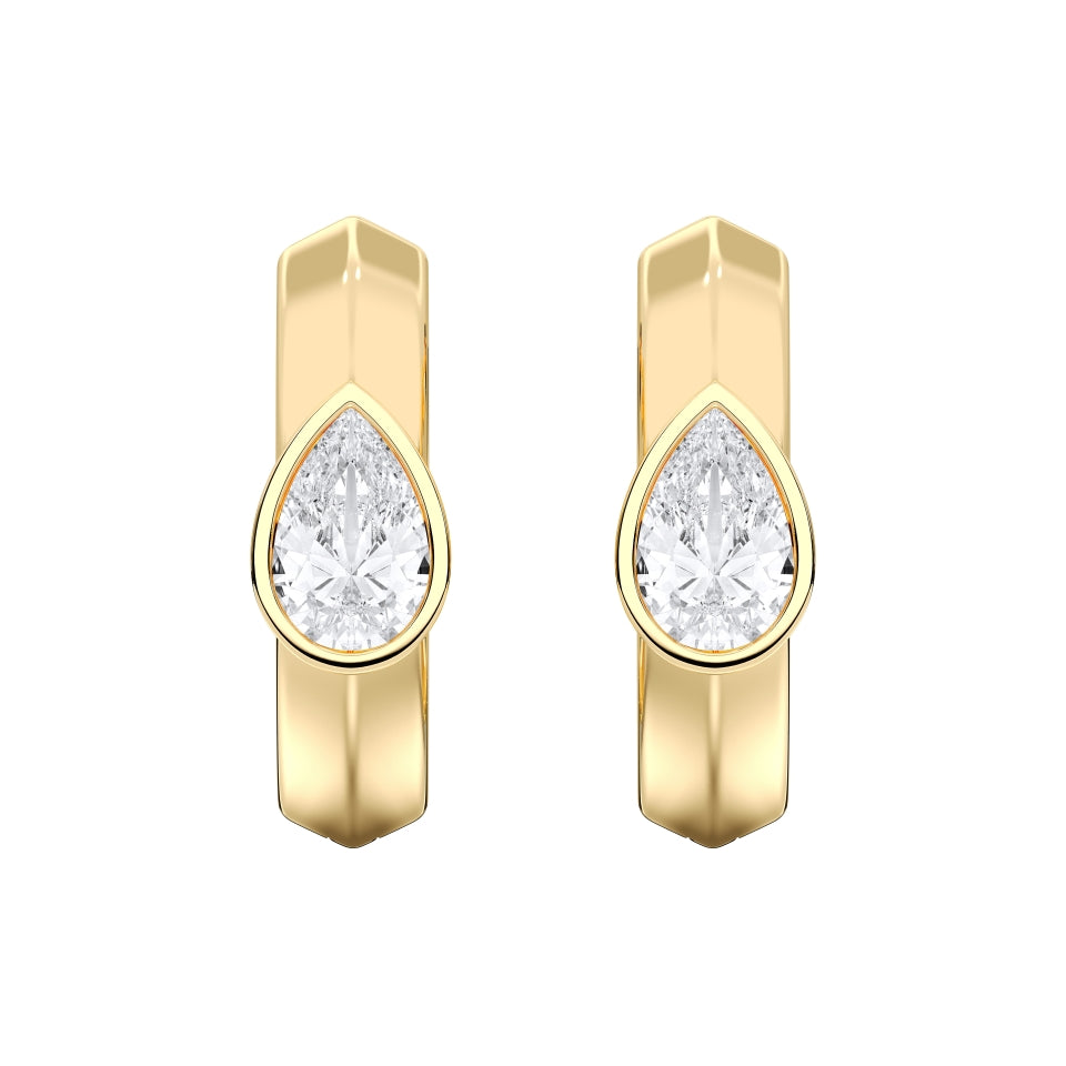 The distinctive pear shape adds a touch of individuality and grace, making these earrings perfect for everyday wear or elegant evenings. The secure hinged hoop design ensures both comfort and effortless wearability, while the polished gold frame beautifully complements the diamond’s brilliance.