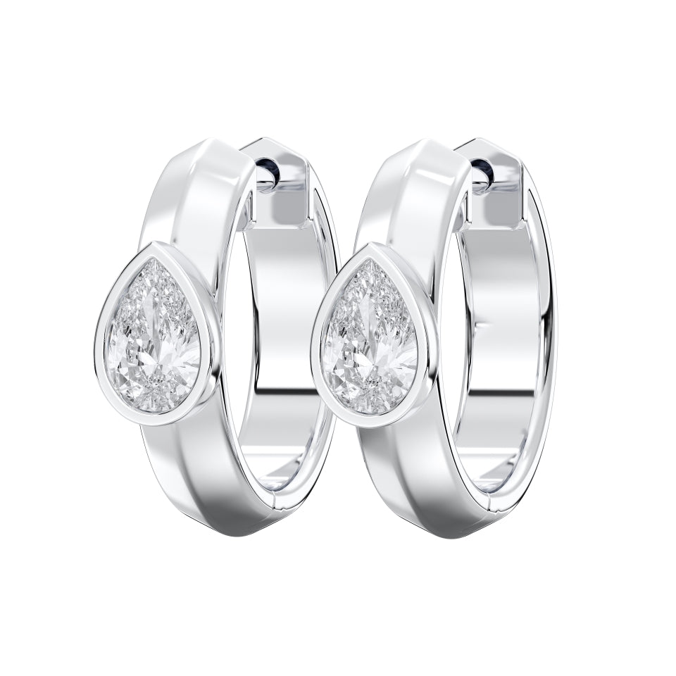 Your Pear Bezel Hoops will arrive in our signature luxury packaging, complete with a velvet-lined display box, premium polishing cloth, and a certificate of authenticity. Standard orders ship within 10 business days. Custom options — such as metal color or total carat weight — are made-to-order and may require 4–6 weeks for completion.