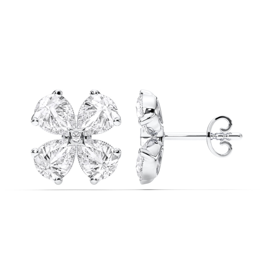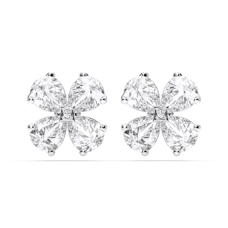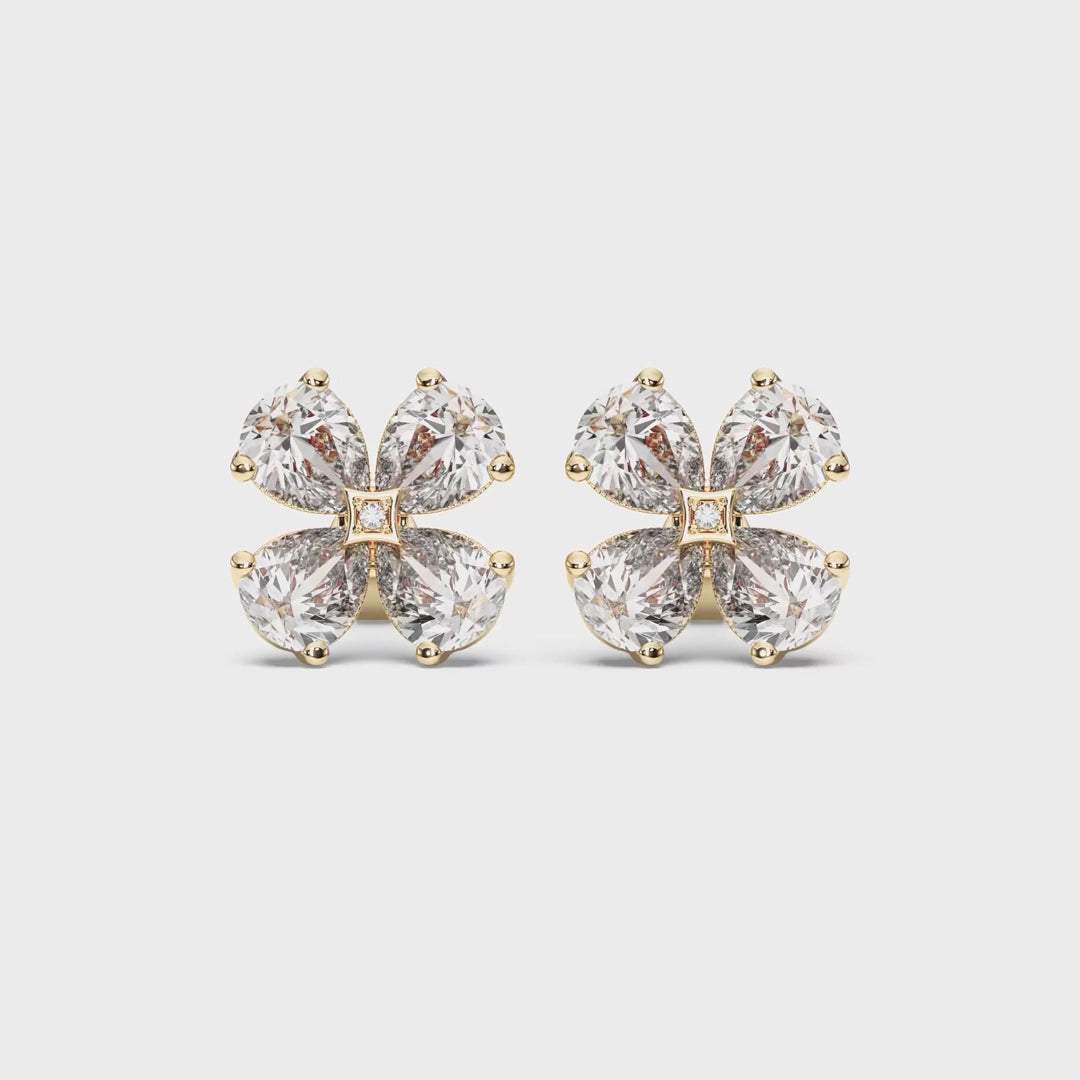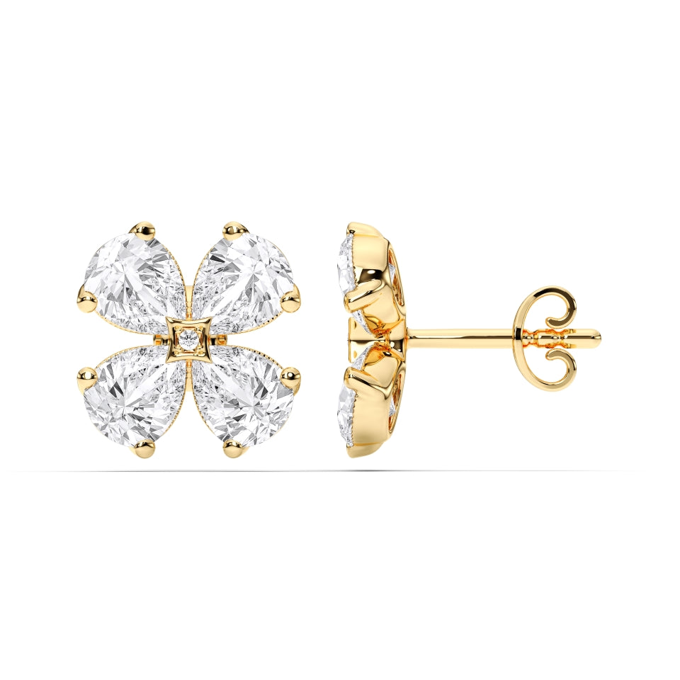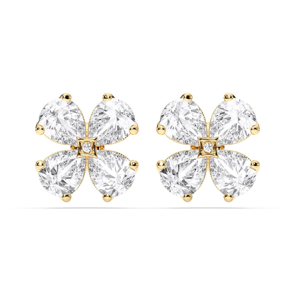 The Pear Shape Cluster Earrings capture the artistry of nature and the elegance of fine jewelry in a timeless floral-inspired design. Expertly handcrafted in solid 14k gold, each earring features four perfectly matched pear-cut lab-grown diamonds, gracefully arranged around a delicate princess-cut center diamond to create a luminous cluster effect.