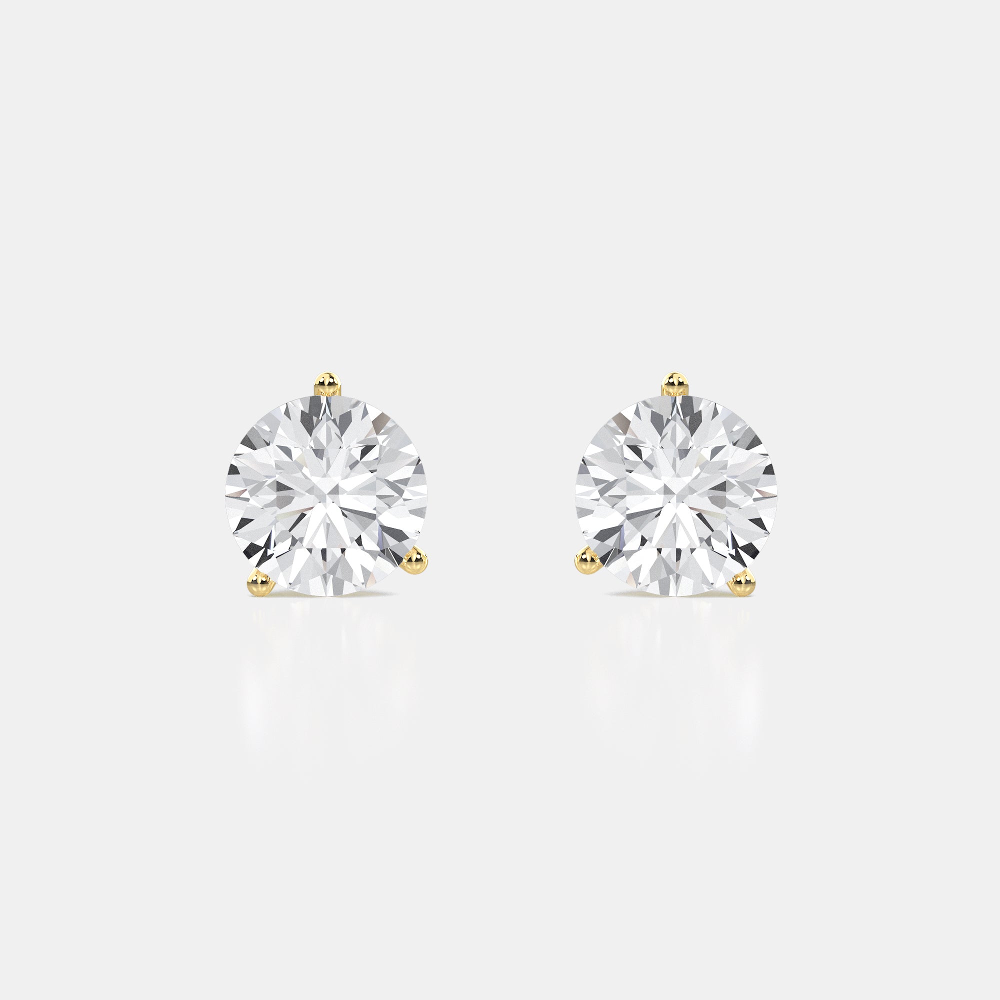 Expertly handcrafted from solid 14k gold, the Round 3-Prong Martini Studs are the perfect blend of elegance and simplicity. Each earring showcases a round brilliant-cut lab-grown diamond cradled in a sleek three-prong martini setting, designed to maximize exposure to light for unparalleled brilliance and fire.