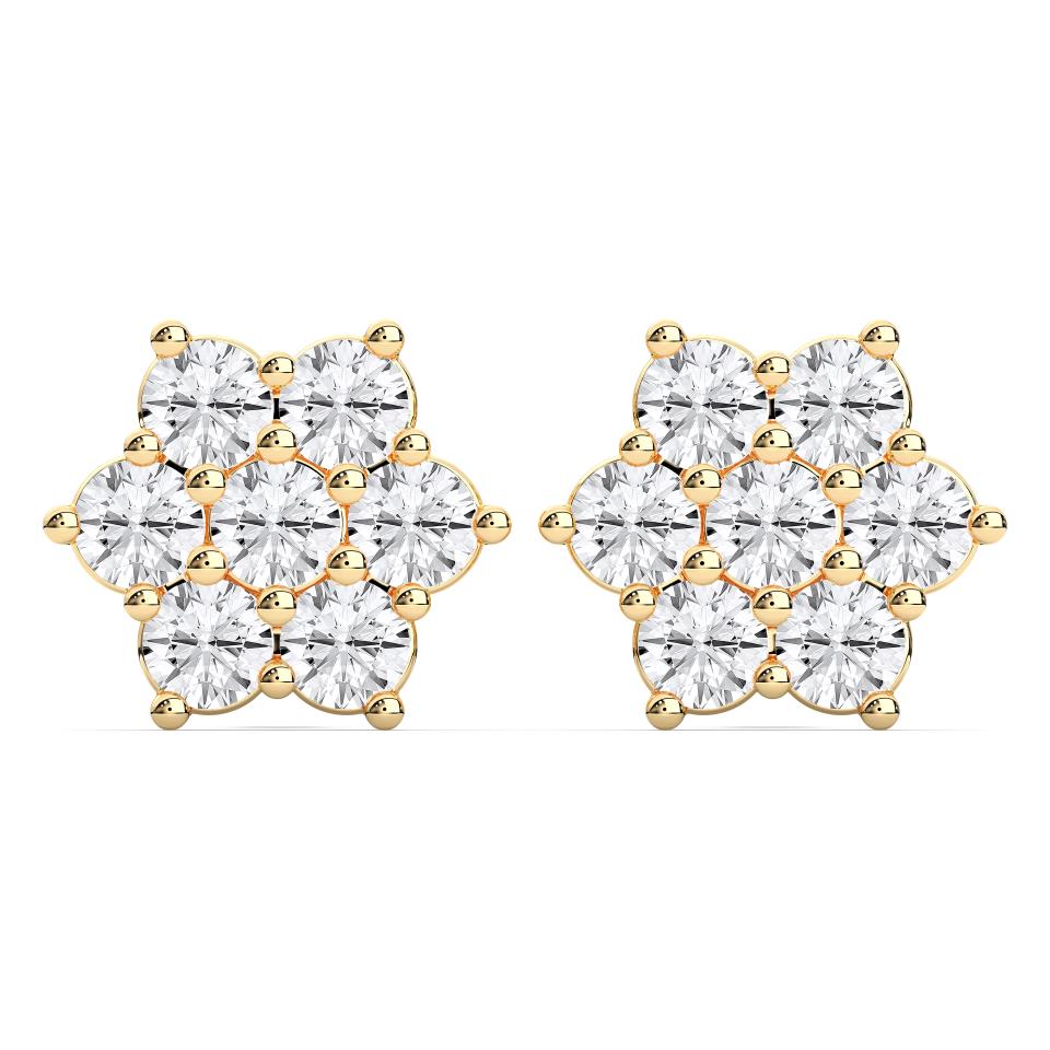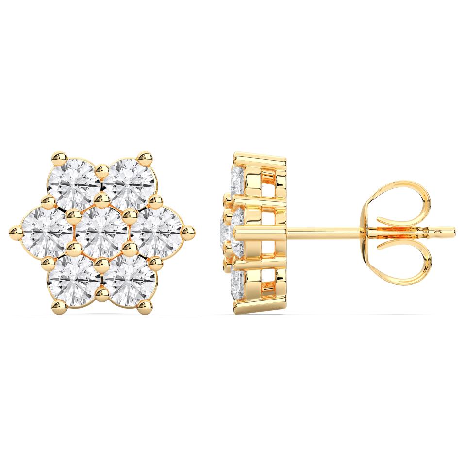 Handcrafted from solid 14k gold, the Round Cluster Earrings capture the essence of timeless glamour with a modern twist. Each earring is composed of meticulously arranged round brilliant-cut lab-grown diamonds, forming a symmetrical cluster that resembles a blooming flower.