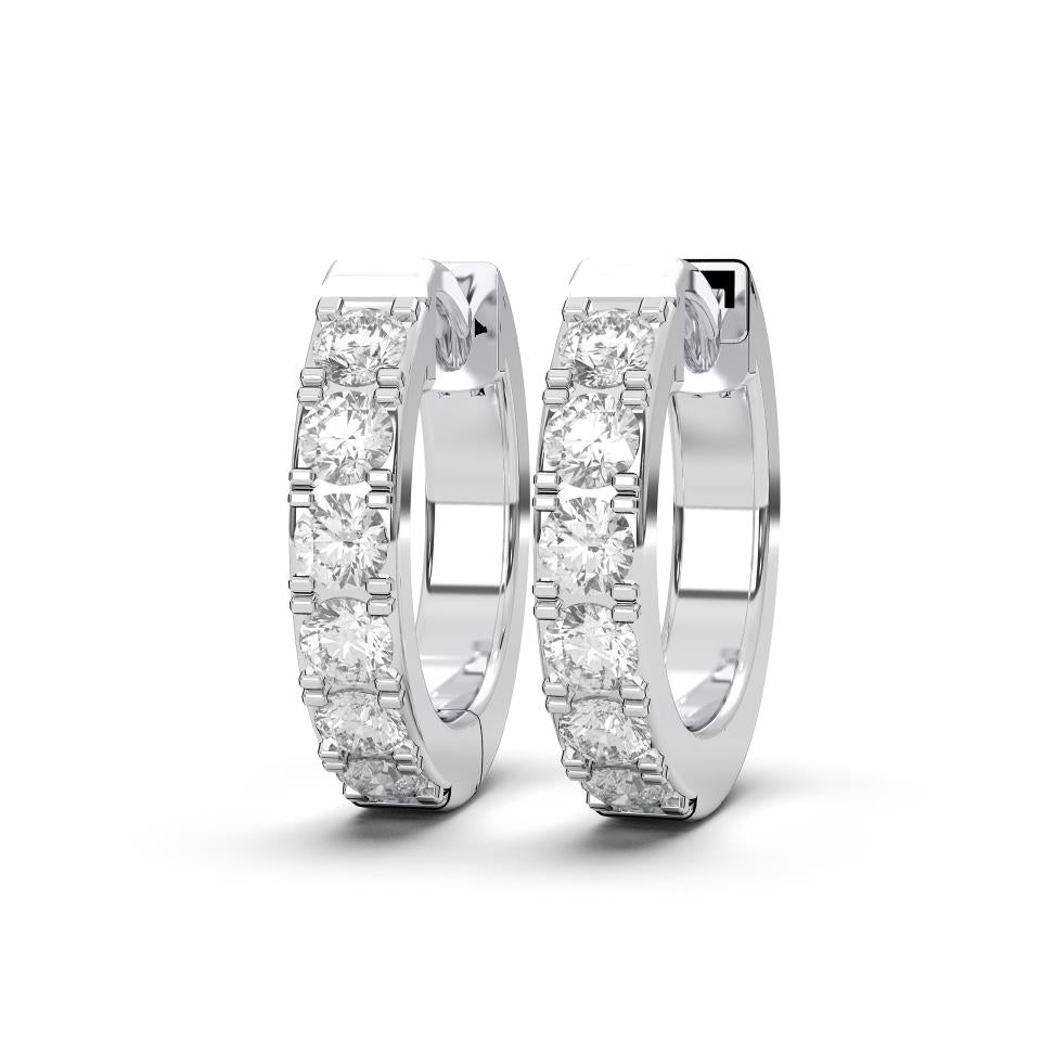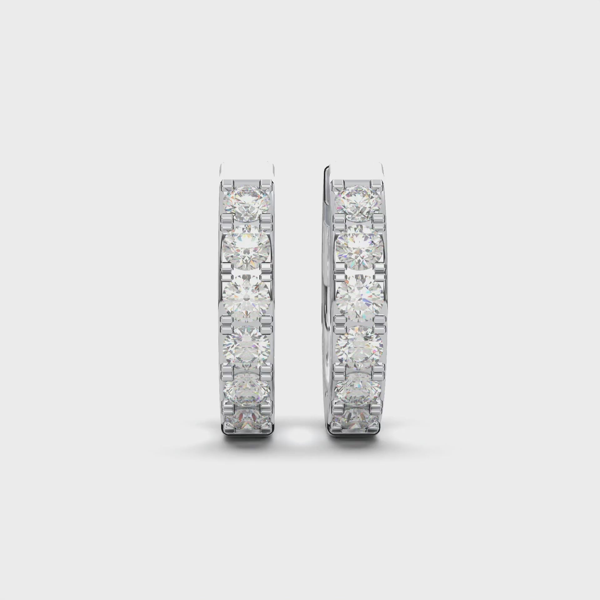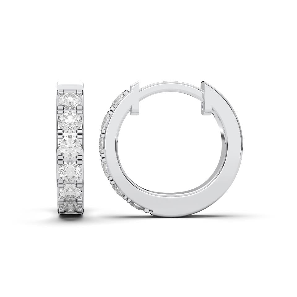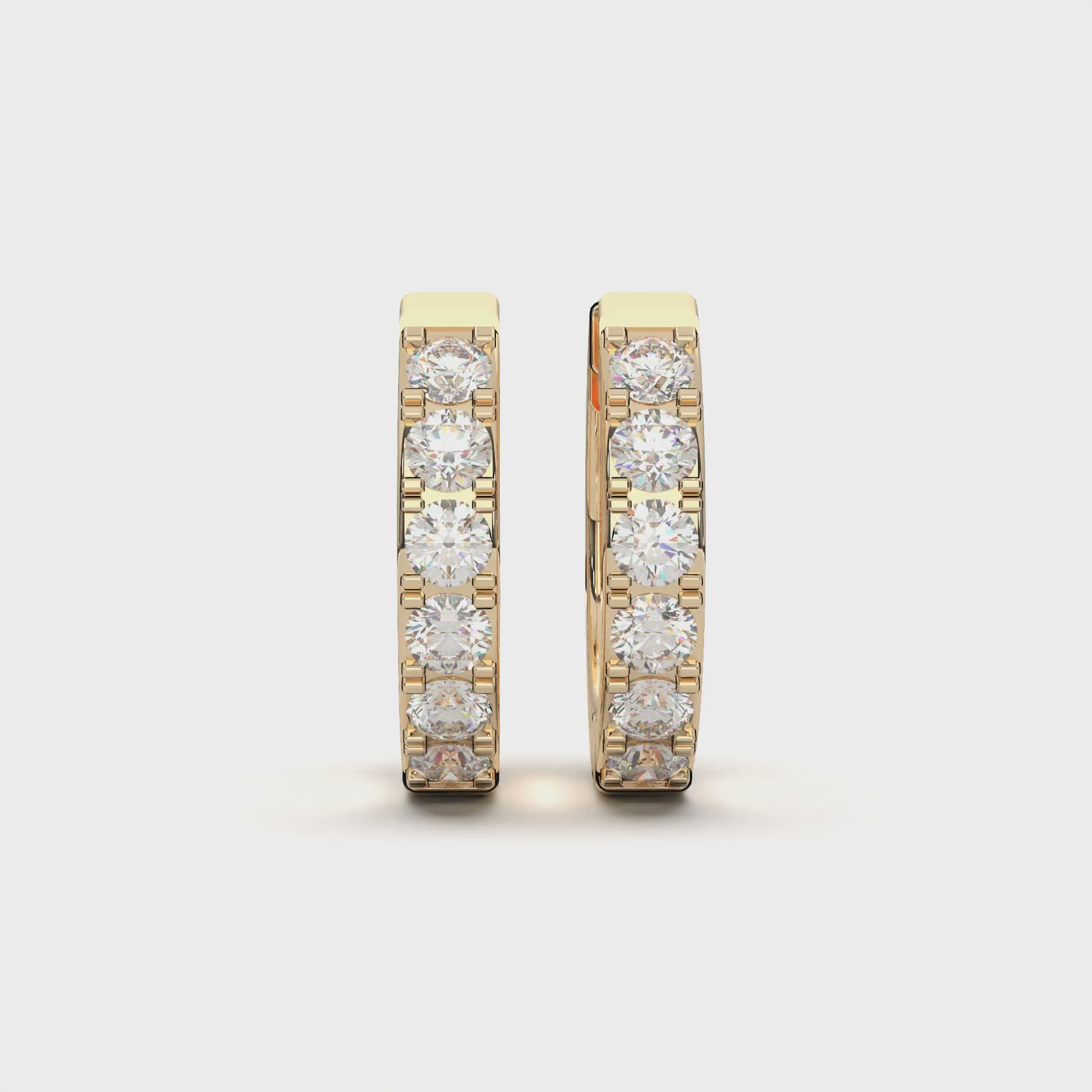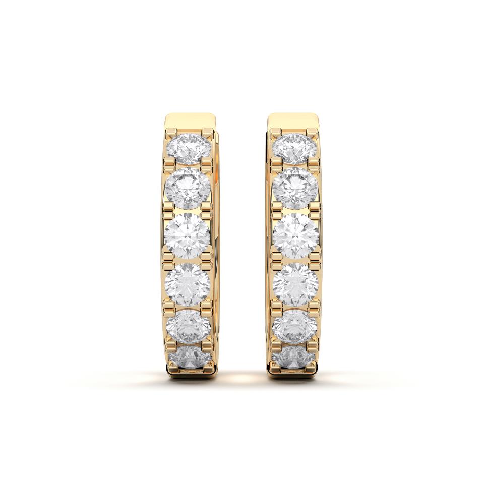 Expertly handcrafted from solid 14k gold, the Round Diamond Huggies offer a harmonious balance of brilliance and comfort. Each hoop is adorned with a continuous row of round brilliant-cut lab-grown diamonds, set in sleek shared prongs to maximize light reflection and radiance.