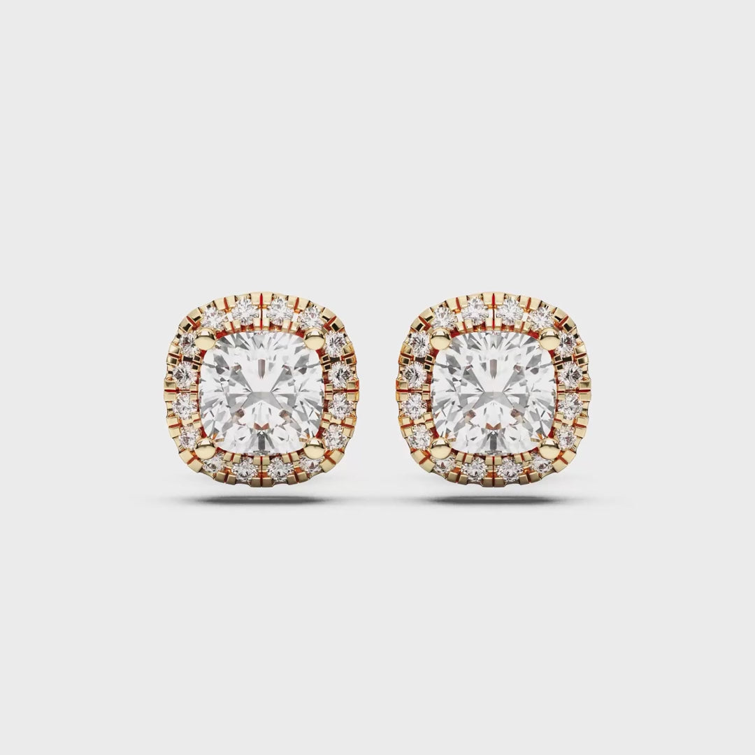 Handcrafted from solid 14k gold, the Square Cushion Halo Earrings are the epitome of refined elegance. Each earring centers a round brilliant-cut lab-grown diamond, surrounded by a delicate halo of smaller diamonds arranged in a cushion-shaped frame — creating a radiant illusion of greater size and brilliance.