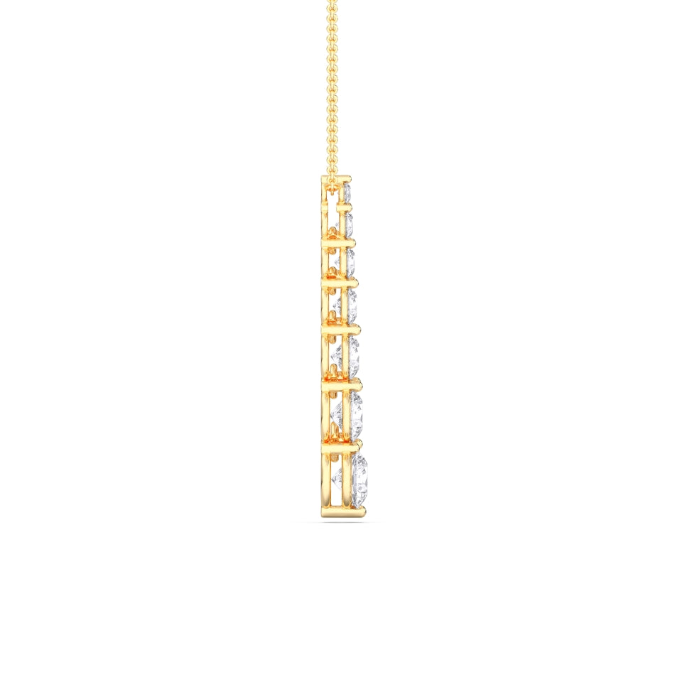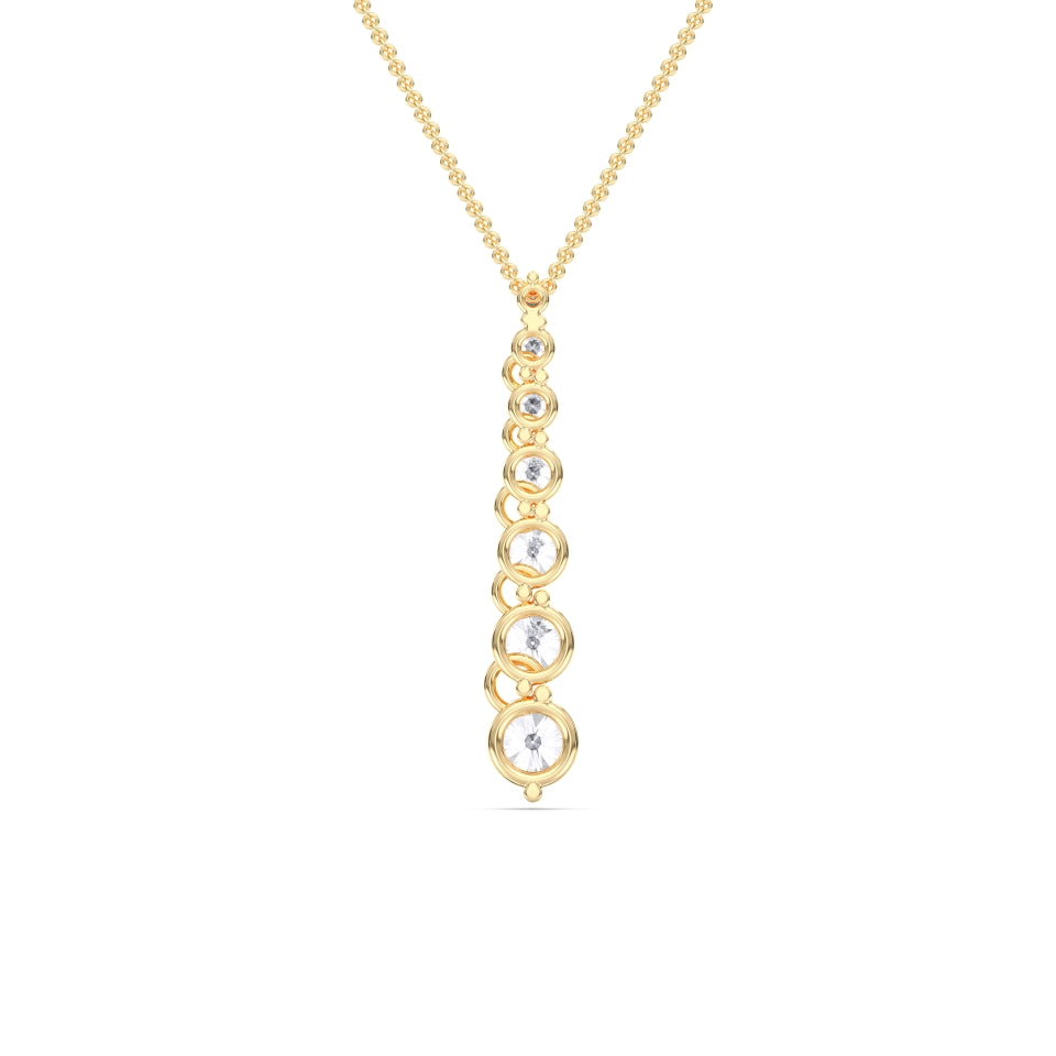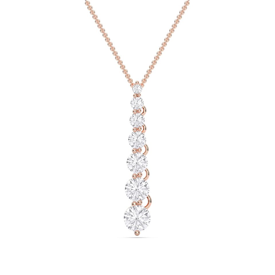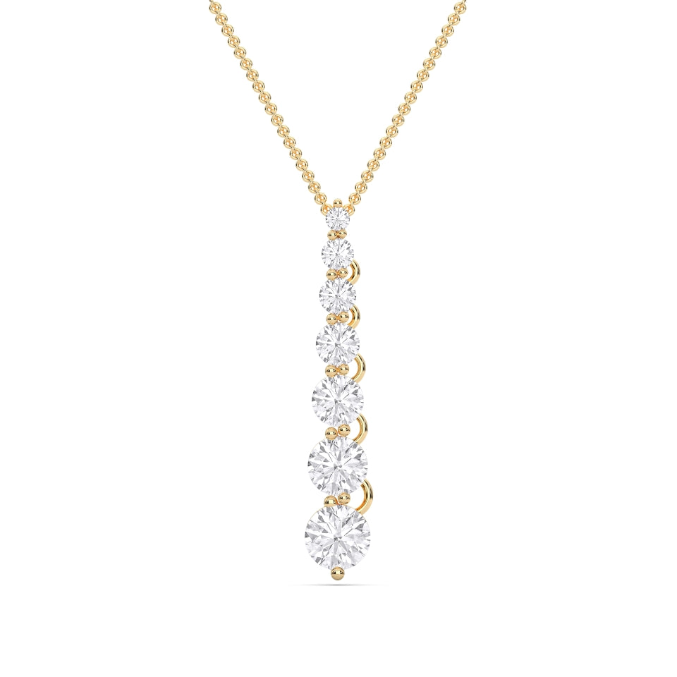 Handcrafted from solid 14k gold, the Round Drop Pendant embodies pure elegance and timeless sophistication. This exquisite design features a cascading sequence of round lab-grown diamonds, each meticulously hand-set in a graceful vertical arrangement that captures light from every angle. The result is a mesmerizing display of brilliance, movement, and balance.