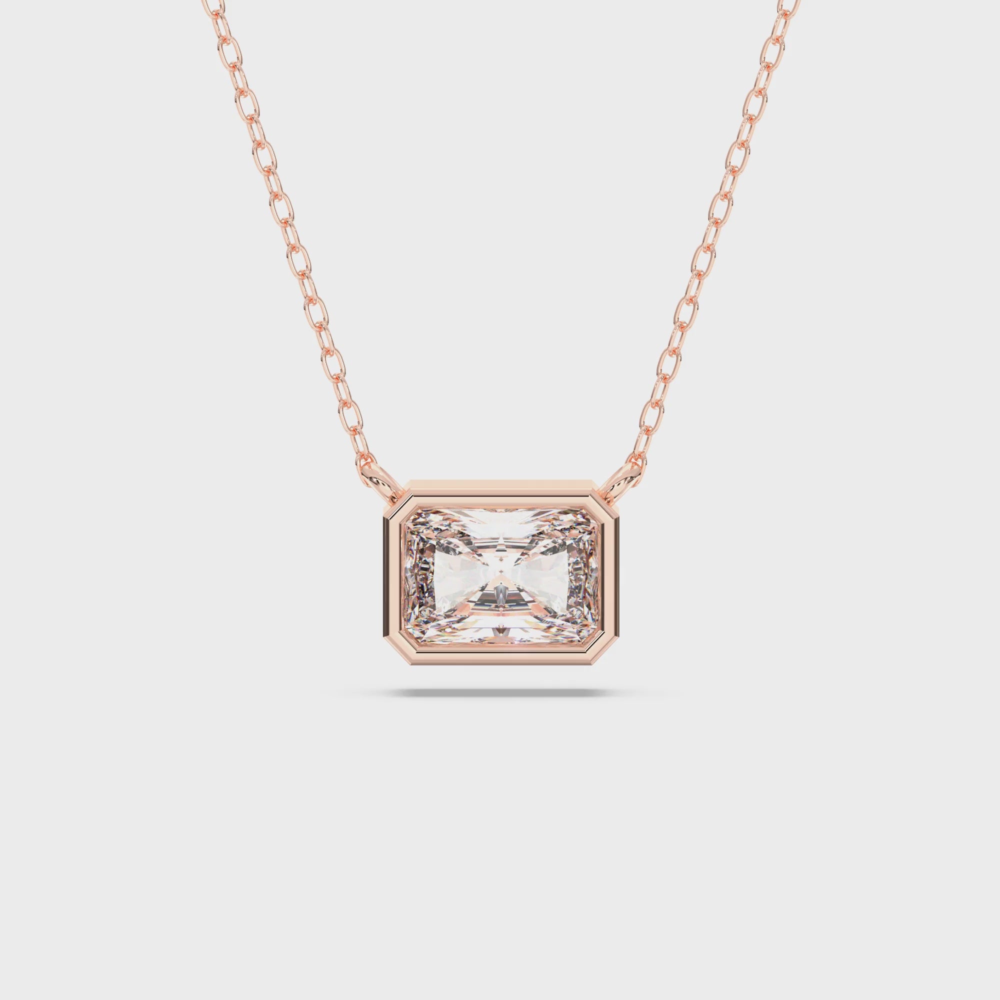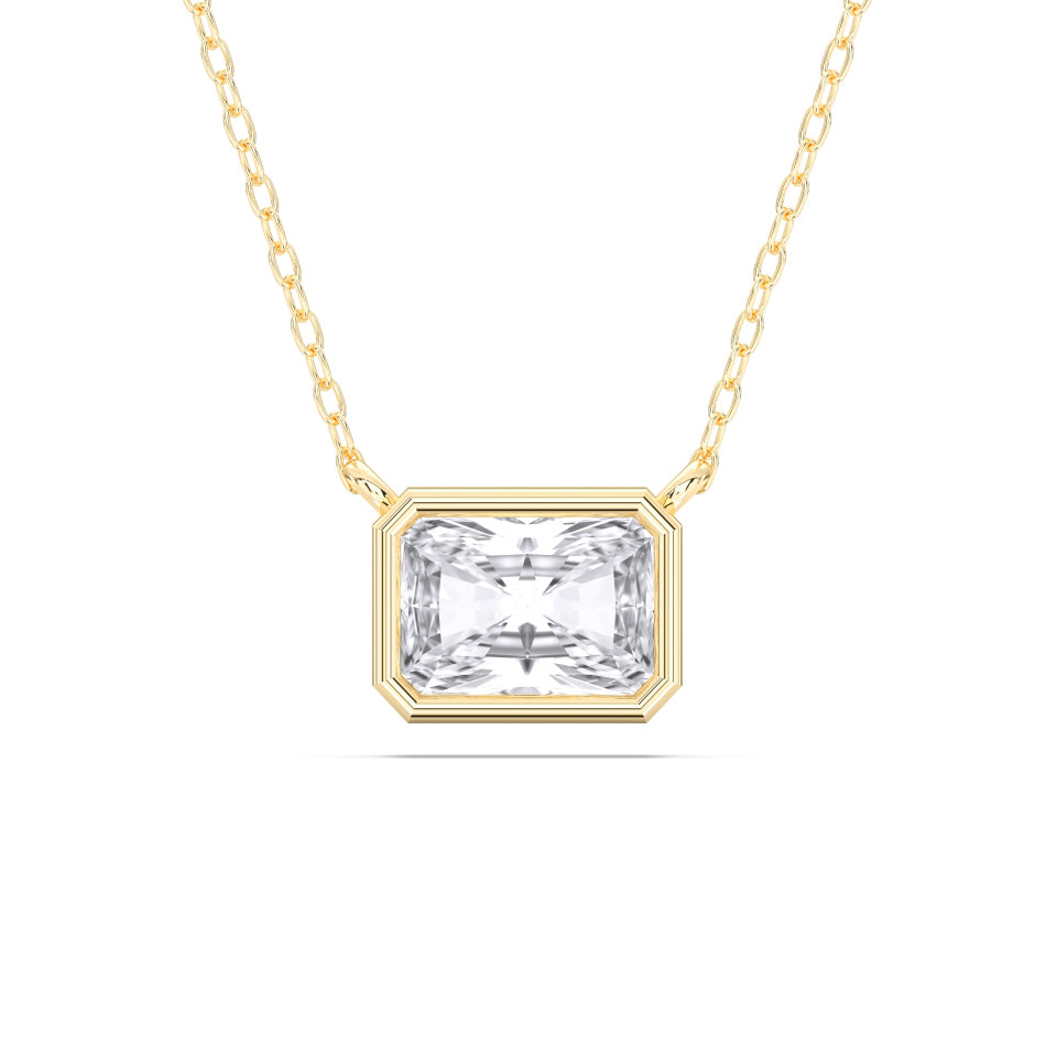Handcrafted from solid 14k gold, the Radiant Bezel Solitaire Pendant is a modern icon of brilliance and refinement. Featuring a stunning radiant-cut lab-grown diamond — a shape known for its captivating fire and elegant symmetry — this pendant embodies the perfect harmony between bold geometry and timeless grace.