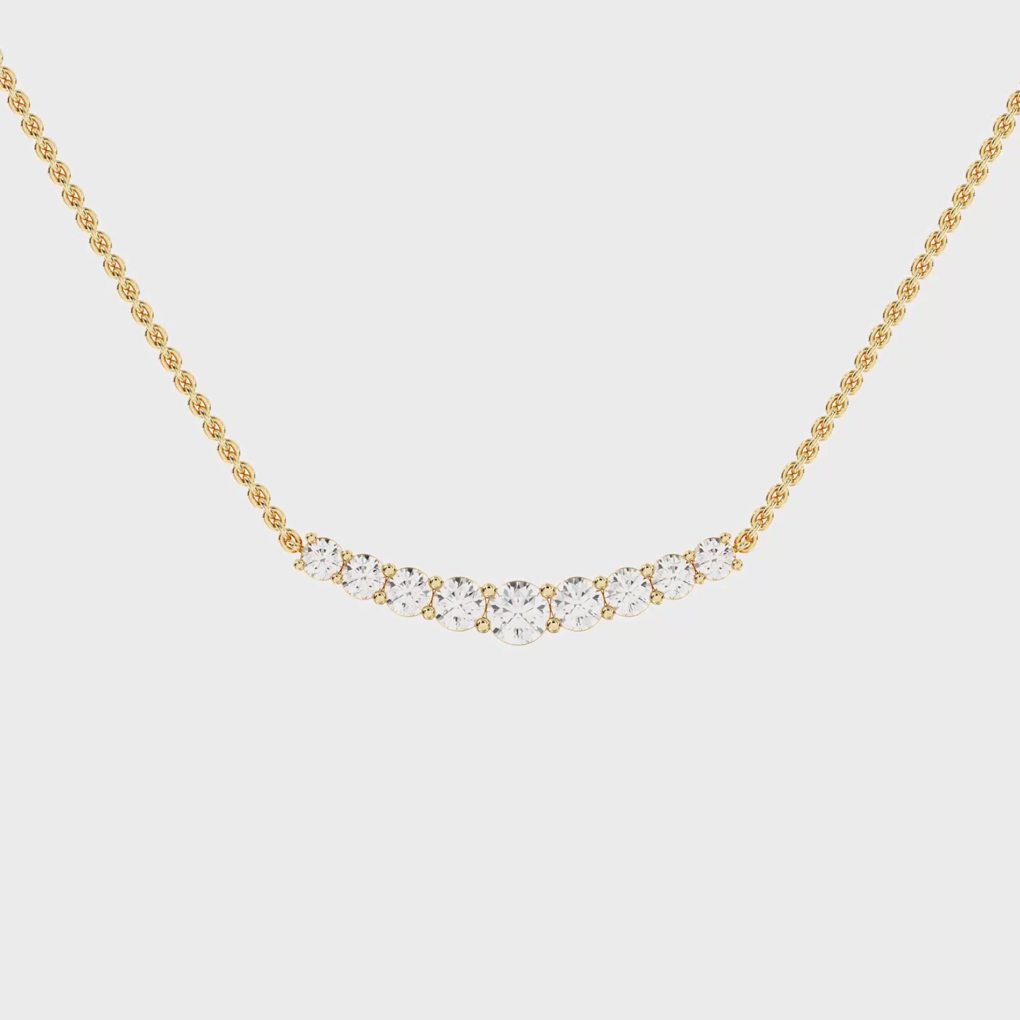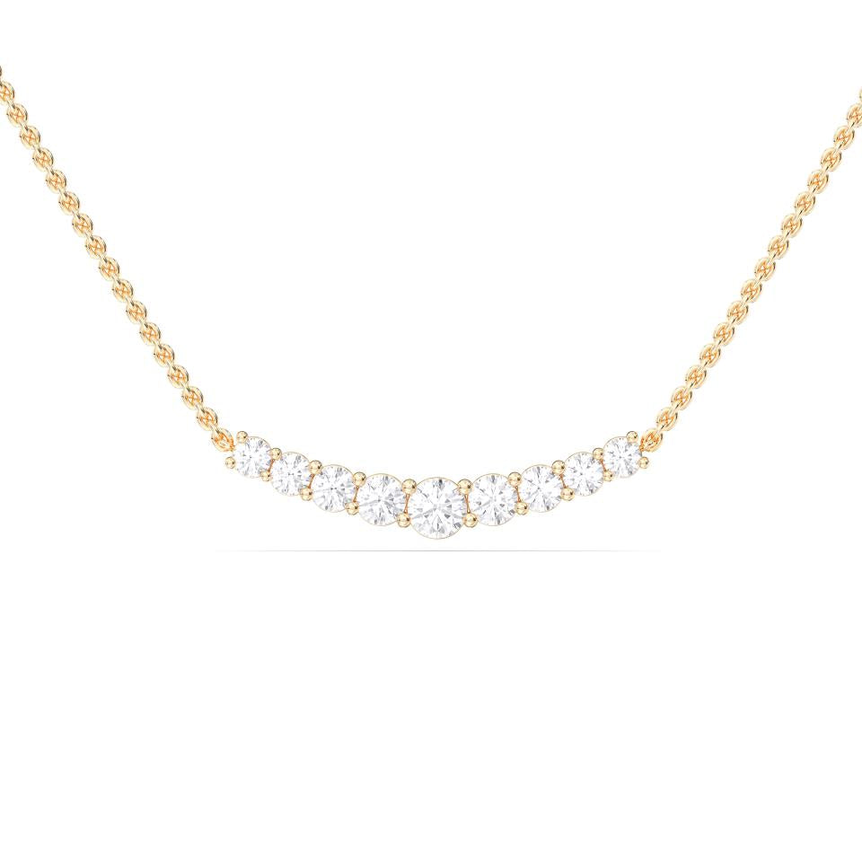 Crafted from solid 14k gold, the Round 9-Stone Pendant embodies classic elegance and modern sophistication. This radiant design features a graceful arc of nine meticulously matched round lab-grown diamonds, each expertly hand-set to create a seamless flow of brilliance across the neckline.