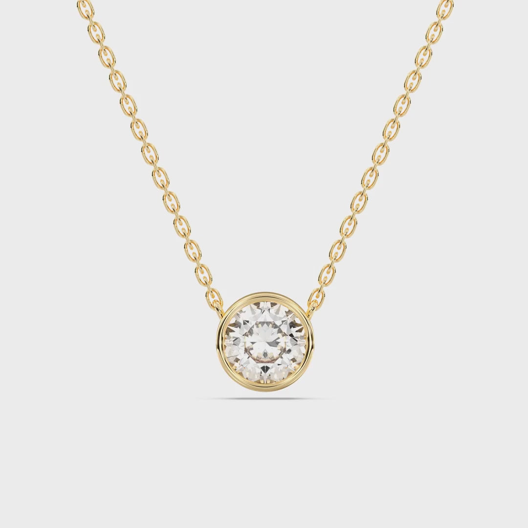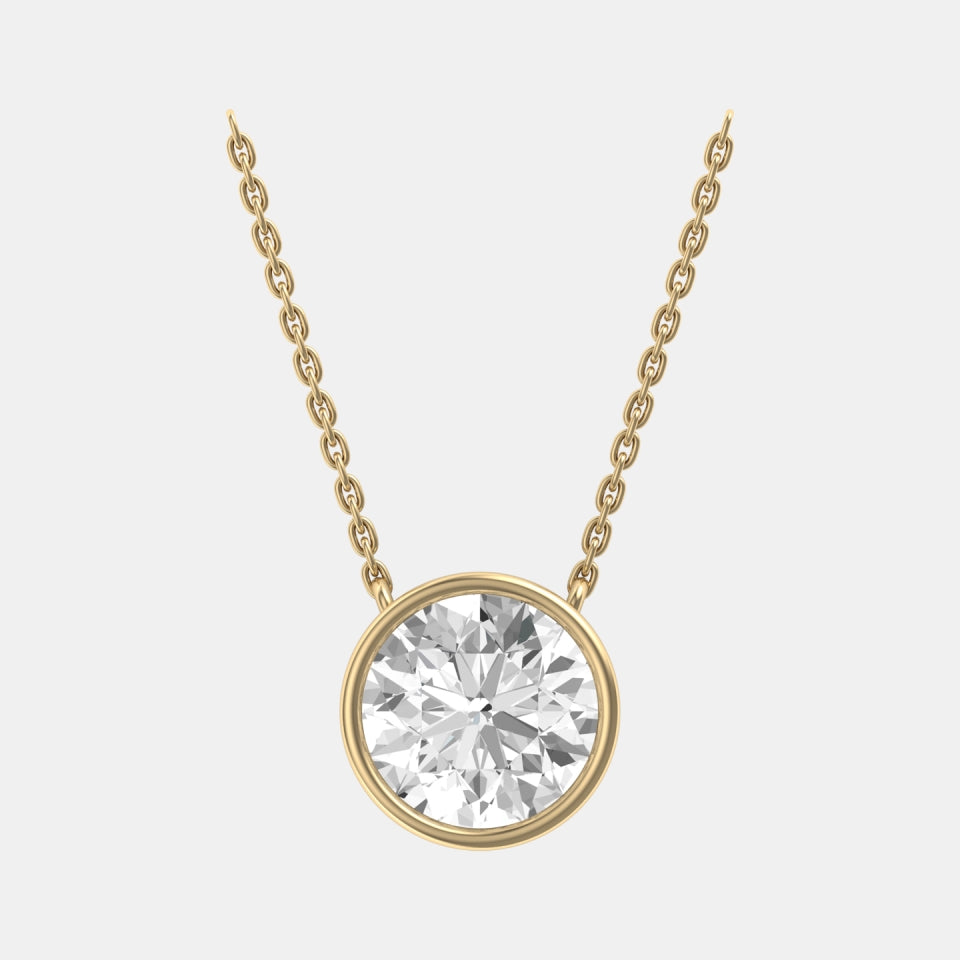 Handcrafted from solid 14k gold, the Round Bezel Solitaire Pendant is the epitome of minimalist elegance and modern sophistication. Featuring a brilliant round-cut lab-grown diamond, perfectly encased in a sleek bezel setting, this pendant captures the essence of refined beauty and everyday luxury.