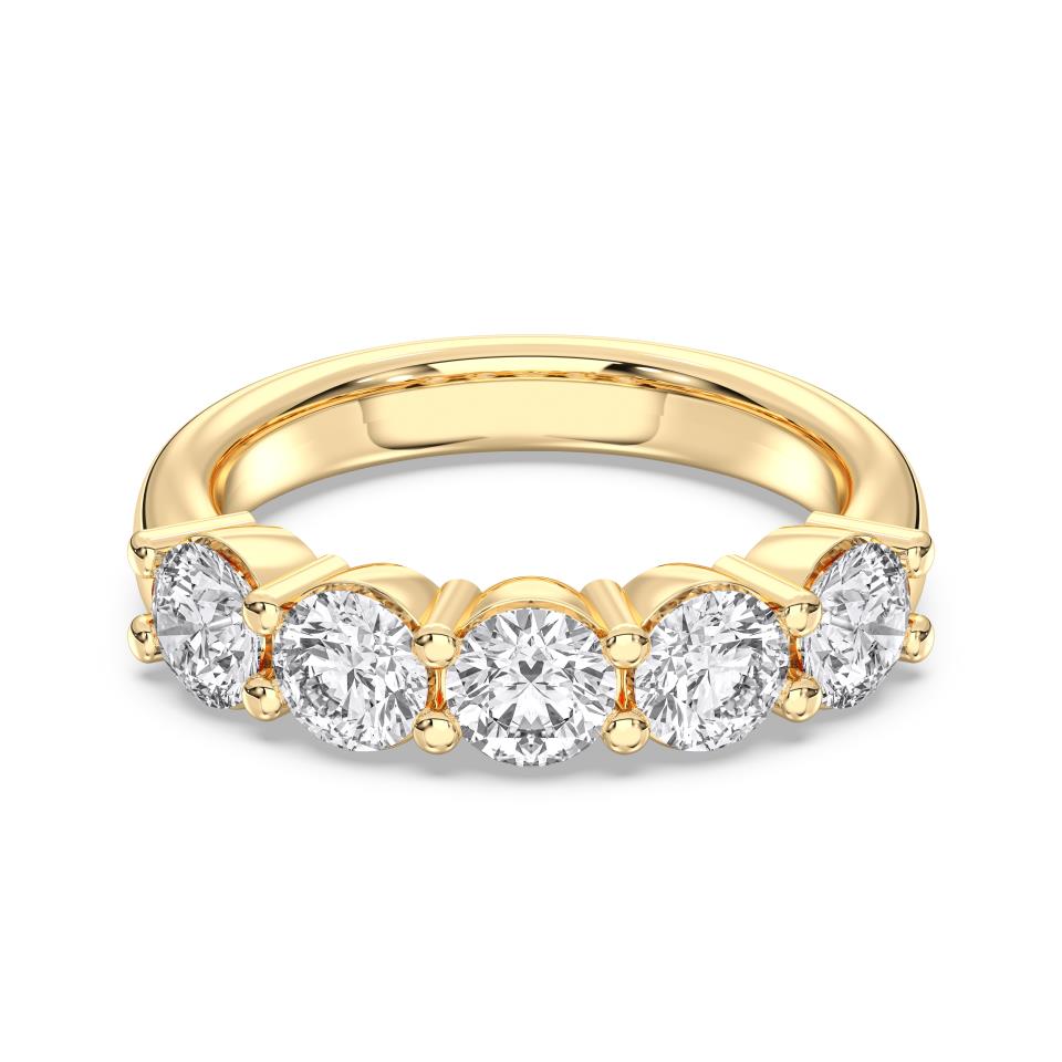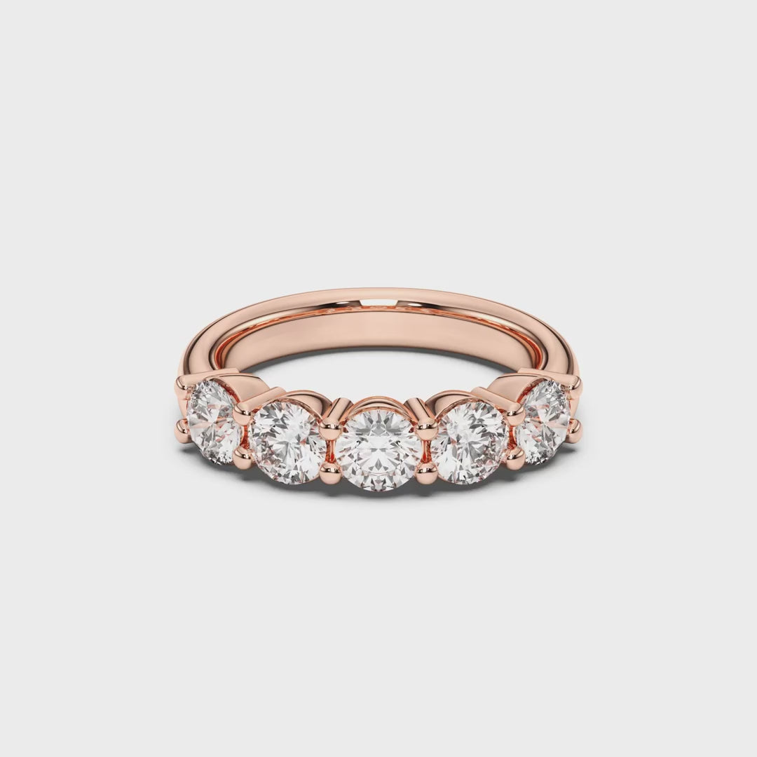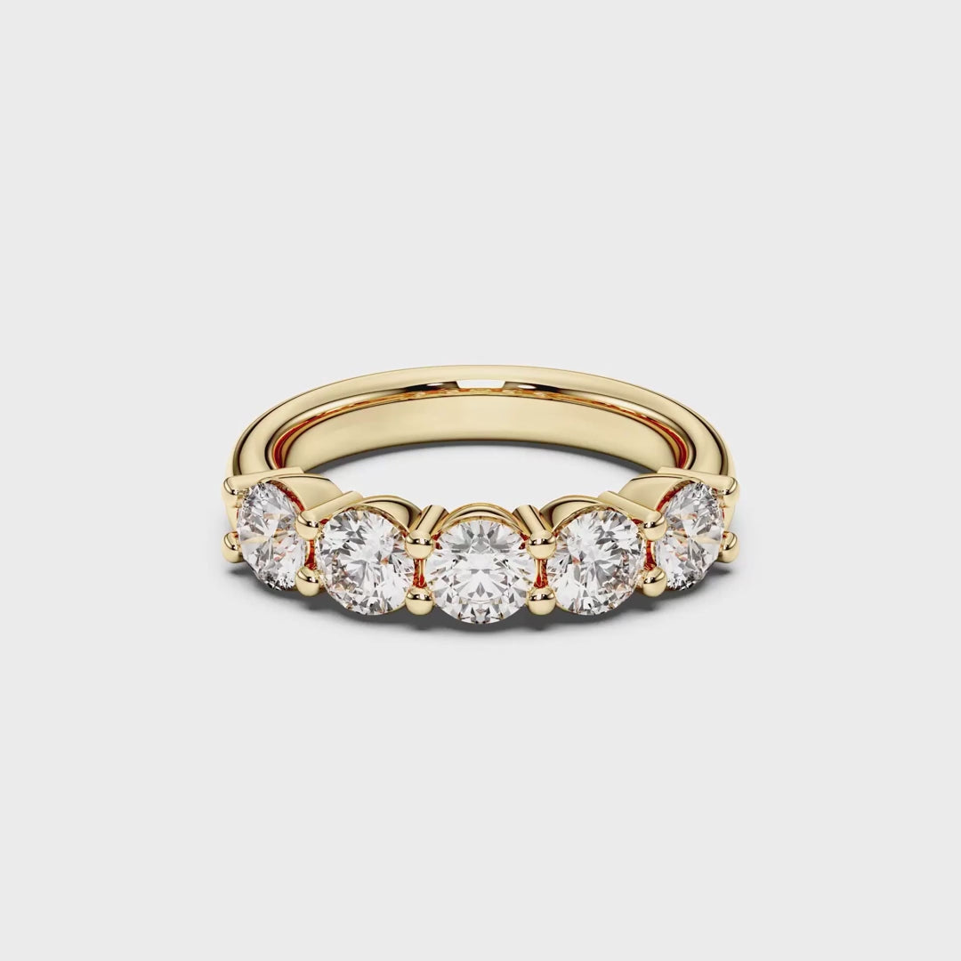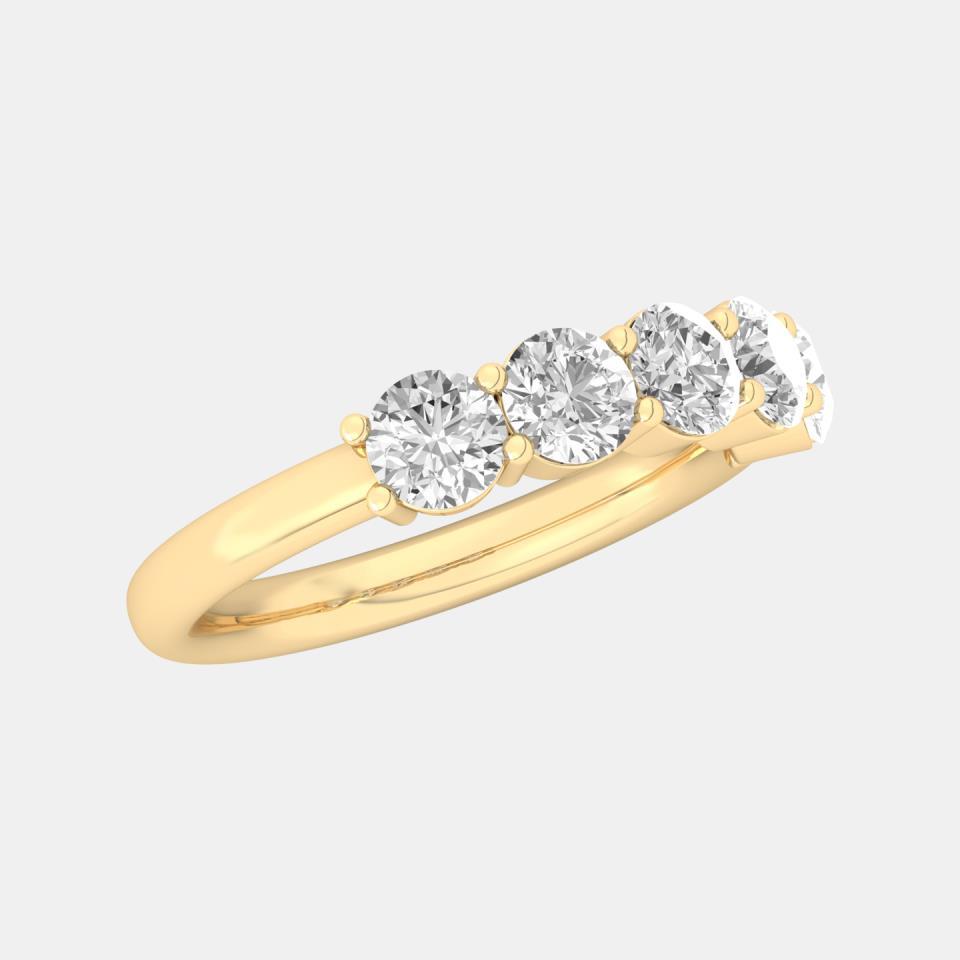The Round 5-Stone Ring embodies timeless beauty and meaningful elegance. Crafted in solid 14K gold, this exquisite ring showcases five perfectly matched round brilliant lab-grown diamonds, representing the enduring journey of love — past, present, and future.