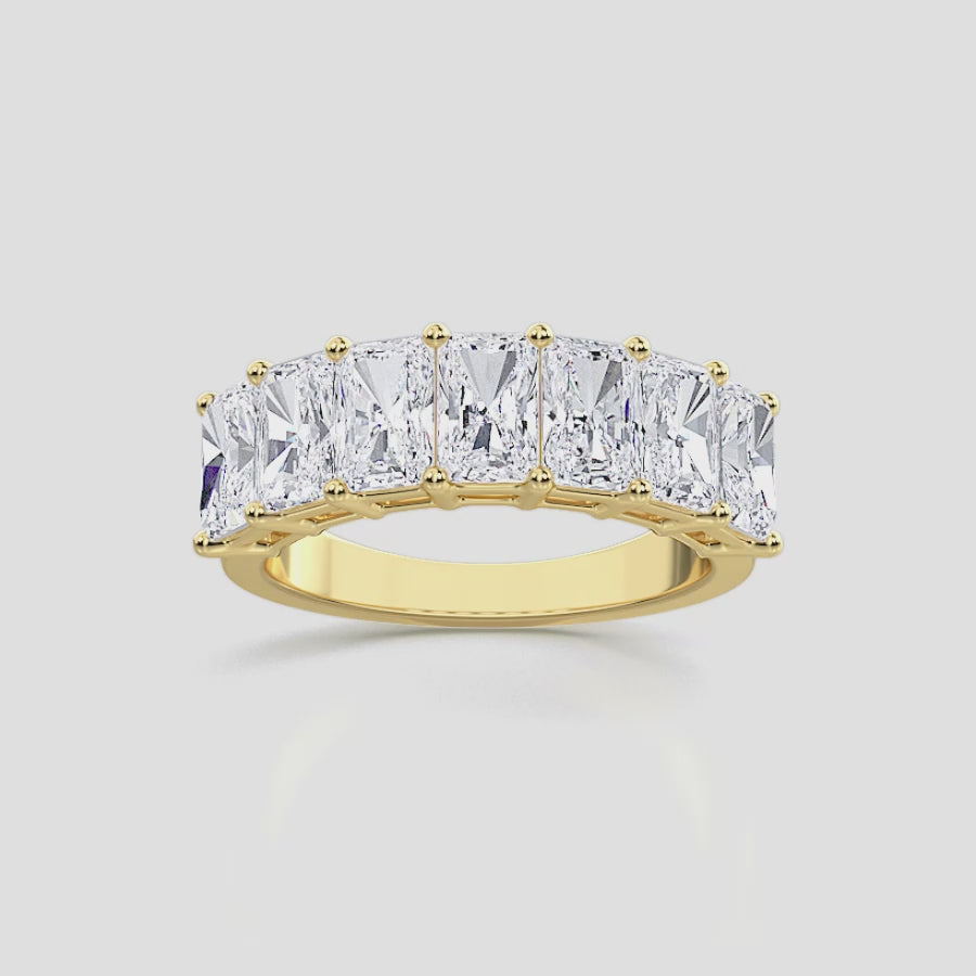 The Radiant 7-Stone Ring captures the perfect balance between classic elegance and contemporary allure. Handcrafted in solid 14K gold, this stunning piece features seven radiant-cut lab-grown diamonds, each carefully matched for exceptional brilliance and fire.