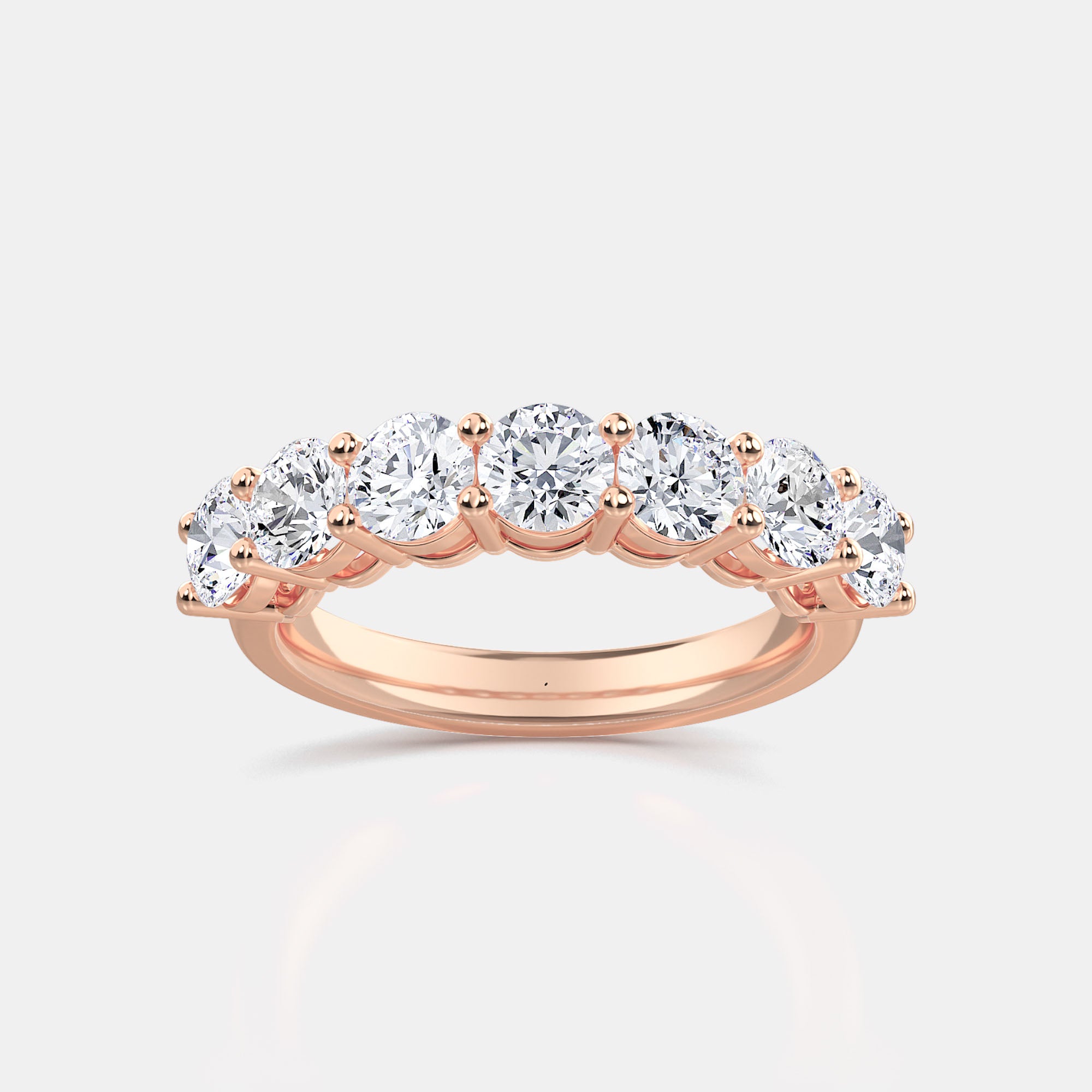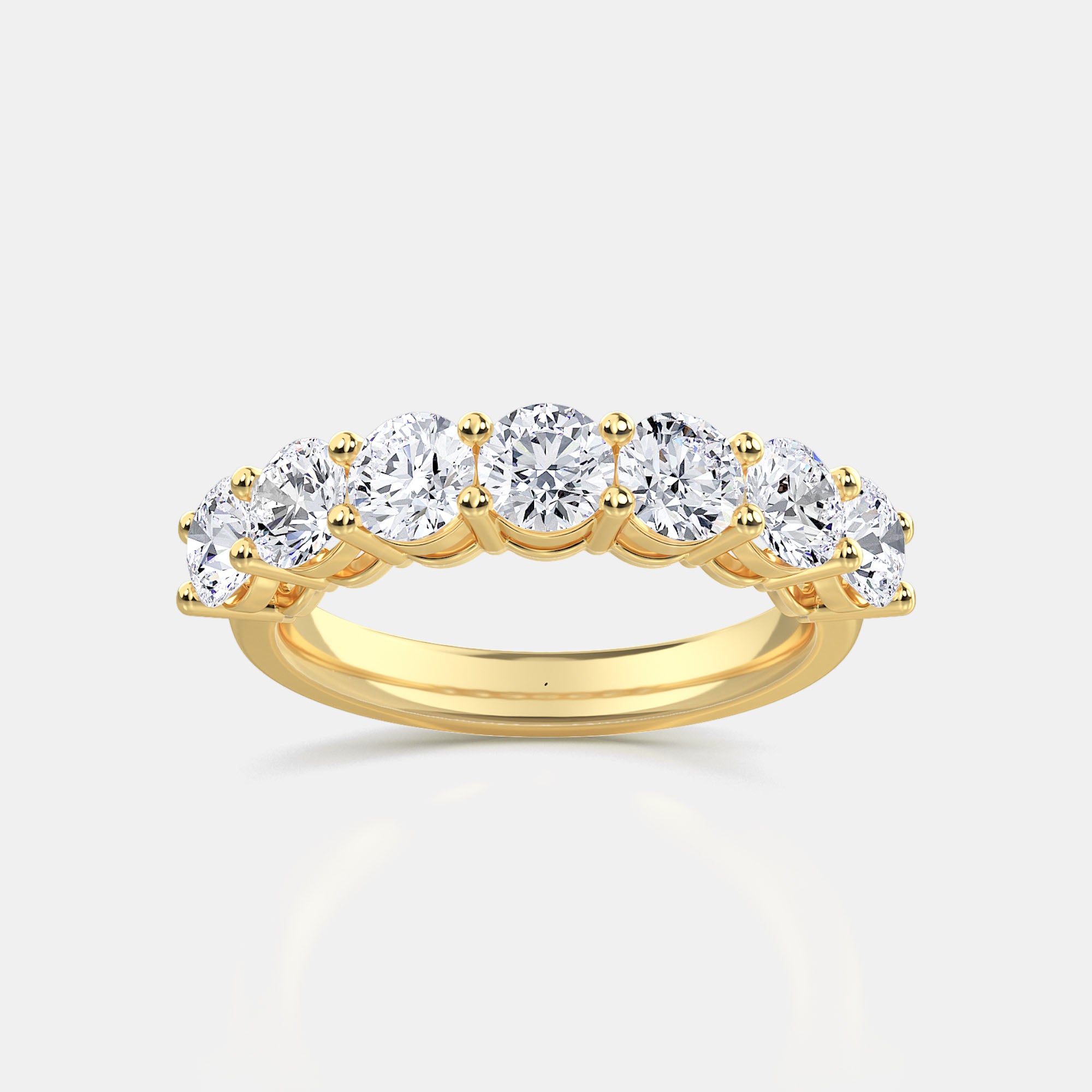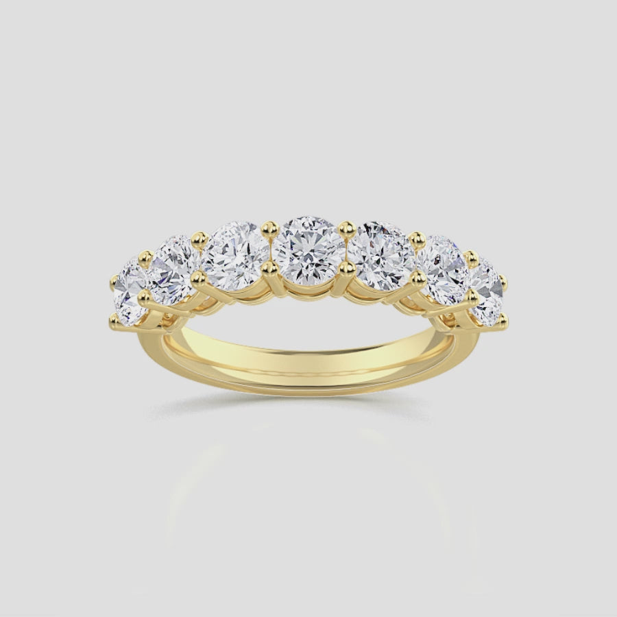 Handcrafted from solid 14K gold, the Round 7-Stone Ring is a symbol of timeless brilliance and refined elegance. Each round brilliant lab-grown diamond is expertly matched and set in a shared-prong design that allows maximum light to enter from every angle — creating an endless sparkle across the band.