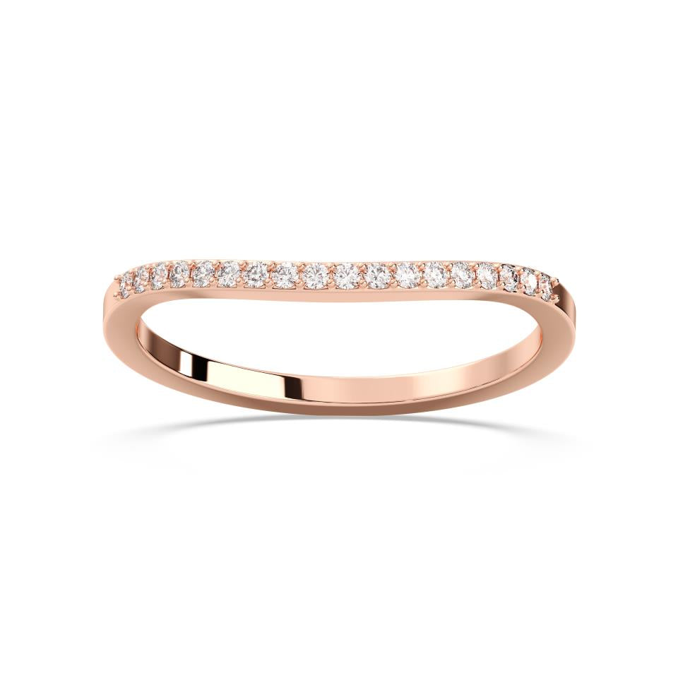 Handcrafted in solid 14K gold, this band features a delicate line of round brilliant-cut lab-grown diamonds, each meticulously set to create a soft, radiant shimmer. Whether worn alone, stacked, or paired with an engagement ring, the Round Curve Band embodies understated sophistication and enduring brilliance.