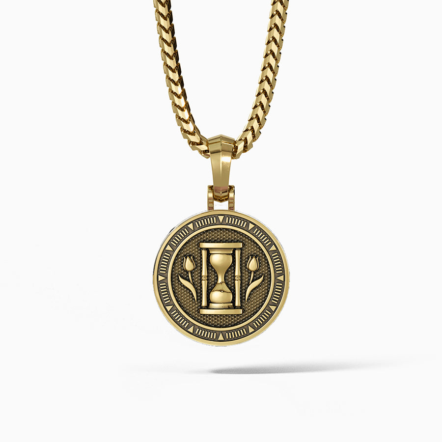 Turn the pendant to unveil the hourglass—serving as poignant reminders of mortality and the relentless passage of time—flanked by lotus flowers to encourage introspection and the pursuit of spiritual growth, emphasizing that awareness of death can lead to a more meaningful life.. These elements represent the continuous ebb and flow of existence, urging you to live with purpose, mindfulness, and appreciation for every chapter of your journey.