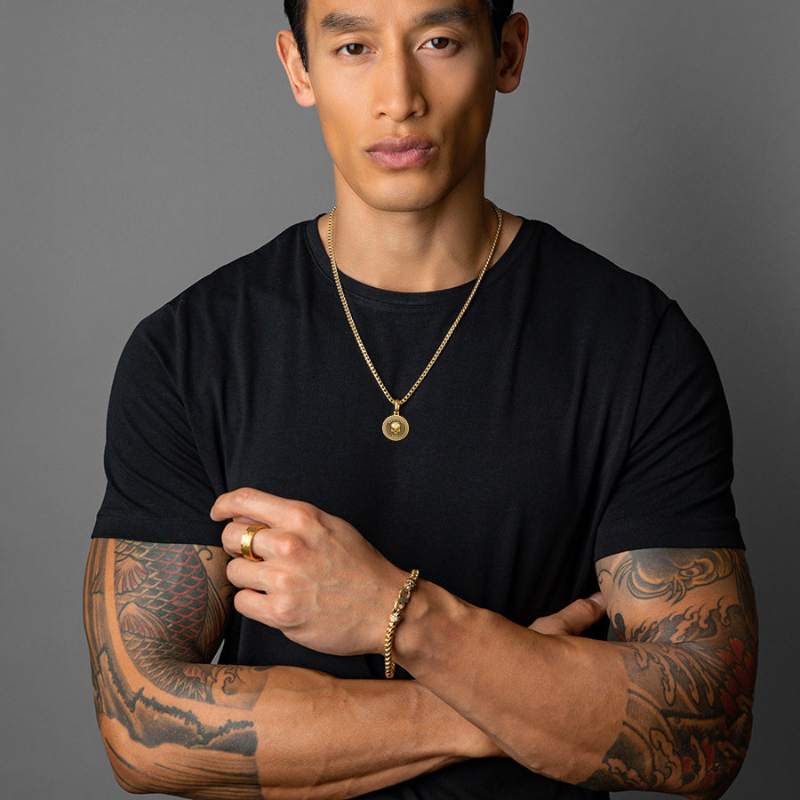 Your Gold Memento Mori Pendant will ship within 5 business days and include our world-class, luxury packaging set, including a matte black display box, protective leather pouch, and large polishing cloth.