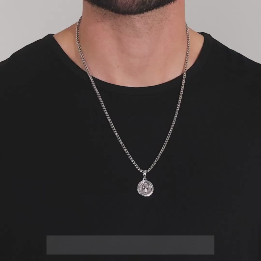 This silver skull pendant, named Memento Mori, translates to "Remember You Must Die" in Latin, and is a powerful reminder to live an incredible, and virtuous life NOW. Like you and I, our loved ones will grow old and tomorrow is not promised. So, don't waste another moment, it will pass in a blink.